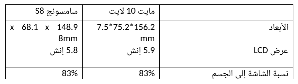 أبعاد شاشتي HUAWEI Mate 10 lite وسامسونج غالاكسي S8 متشابهتان جداً: