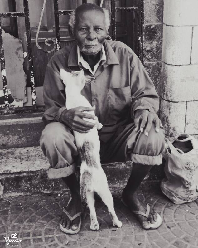 فحاولت ان أنتهز الفرصة وآخذ له صورة مع قطه فطلبت منه أن ألتقط له صورة