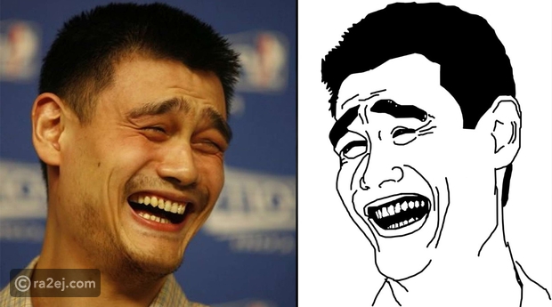 صاحب الصورة الشهيرة هو لاعب كرة السلة الصيني المعتزل ياو مينغ Yao Ming، الذي لعب لنادي "شنغهاي شاركس" في الصين و"هيوستن روكيتس" في الـ NBA بالولايات المتحدة الأميركية.