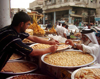 وفيما يتعلق بحلويات العراق الرمضانية فهي - حسب زيباري - (خليط من الحلوى العراقية والايرانية والسورية مثل الكنافة والقطائف والشعوبية والبسبوسة والبقلاوة والزلابيا، حيث انتقل كثير منها من الدول المجاورة الى العراق عن طريق التبادل التجاري).