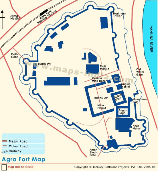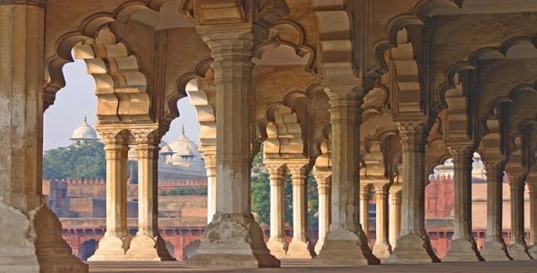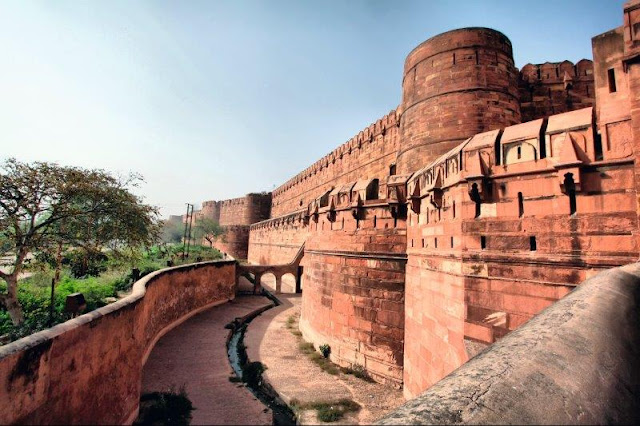 بنى السلطان جلال الدين أكبر "قلعة أجرا الحمراء" Red Agra Fort عام 1558 من الحجر الرملي الأحمر بالقرب من نهر يمنا على مساحة 2.5 كيلو متر و تعد القلعة الأن من أهم معالم السياحية في الهند "بلد العجائب"
