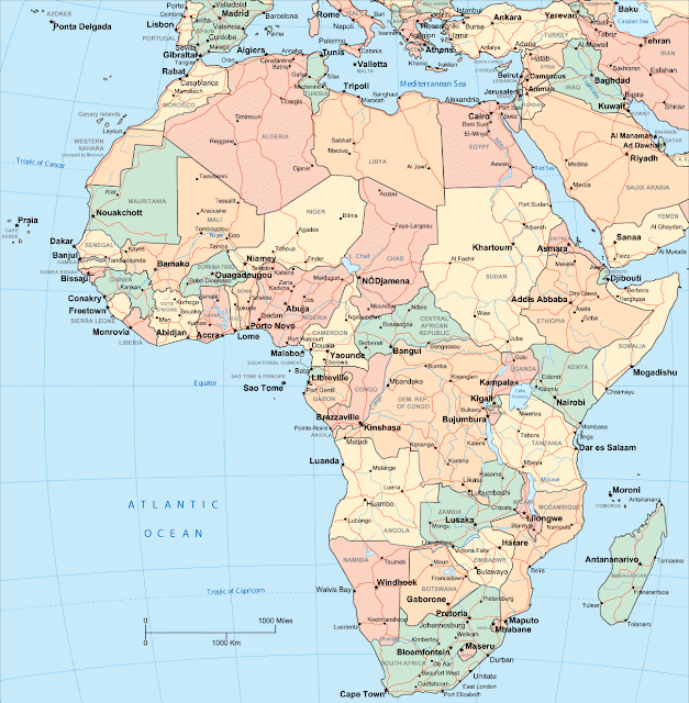 خريطة قارتنا قارة افريقيا African Map صماء, سياسية, و الجغرافية الطبيعية