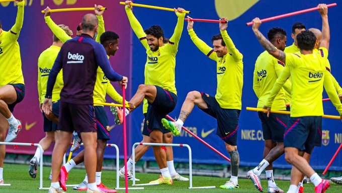 ميسي التحق بالتمارين الجماعية لفريقه #برشلونة اليوم تحضيرا لاستئناف منافسات الدوري الإسباني هذا الأسبوع غداة تأكيد مدربه كيكي سيتيين ان قائد التشكيلة الكاتالونية سيكون جاهزا لخوض المباراة الأولى بعد العودة