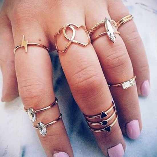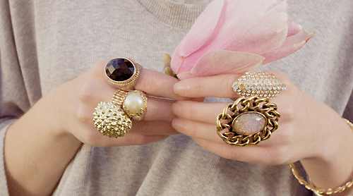 يبدو أن ارتداء العديد من أكثر من خاتم باليد معا أصبح صيحة هذه الأيام. أنا أعشق ارتداء العديد من الأساور الى جانب ساعة اليد، فكل فتاة بحاجة لارتداء أشياء لامعة قبل الخروج من المنزل، أليس كذلك؟ إضافة إلى ذلك، فقد أصبحت مؤخرا من محبي ارتداء أكثر من خاتم باليد معا. في البداية كنت مترددة لأنها قد تكون مبالغ فيها بعض الشيء ولكن هناك طريقة صحيحة تمكنك من التألق بها.