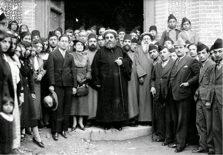 مدرسة لورا خضوري الملك فيصل الأول الى يمينه ساسون حسقيل وليساره جعفر 1924