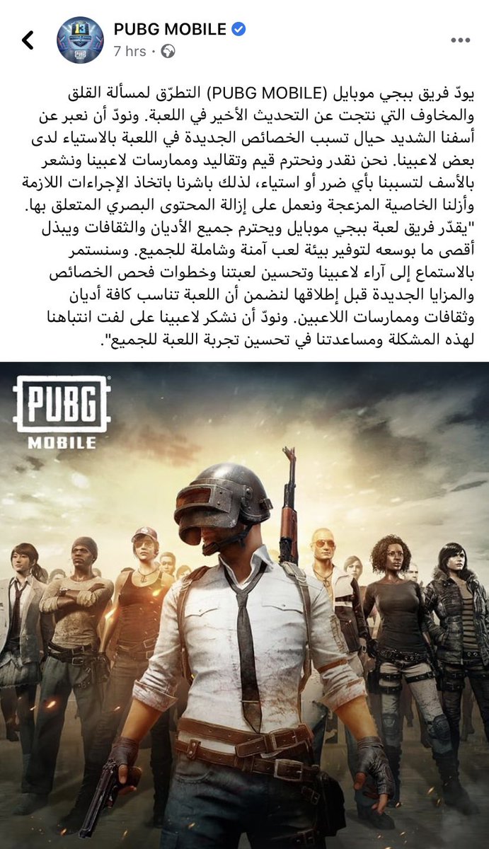 ونشرت دار الإفتاء المصرية، على صفحتها الرسمية بـ"فيسبوك" وتويتر، الخميس، البيان الذي أصدره فريق لعبة بابجي حول التعديلات الجديدة، معلقة " شكرا على الاستجابة السريعة".