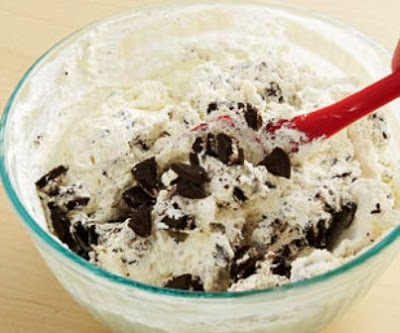 - يخلط البسكويت العادي مع بسكويت أوريو مع الكريمة و الزبدة والشوكولاته المذابة.