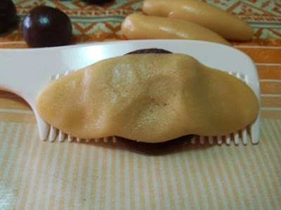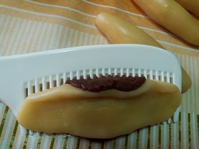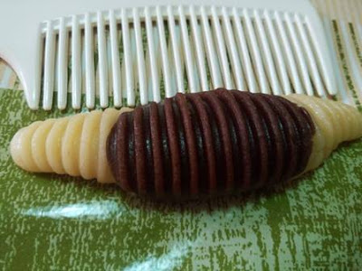 - ثم تنزع أطراف العجينة من المشط مع لفها.