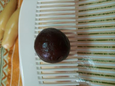- يضغط على الكرة البنية وتوضع وسط المشط.