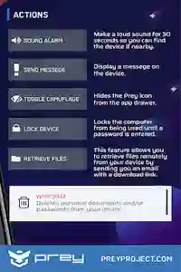 Prey Anti-Theft هو تطبيق موجود منذ فترة يثق به الكثير من الناس. الغرض منه كله هو مساعدتك في العثور على هاتفك إذا فقد. ومع ذلك، فهو أيضًا خفيف الوزن مثل Cerberus. ويحتوي على الميزات الأساسية مثل العثور على هاتفك وقفل جهازك وإيقاف التنبيه.