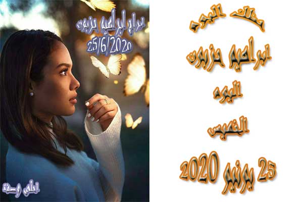 حظك اليوم الخميس 25 / 6 / 2020 | برجك اليوم الخميس 25 يونيو/ حزيران 2020 | ابراهيم حزبون