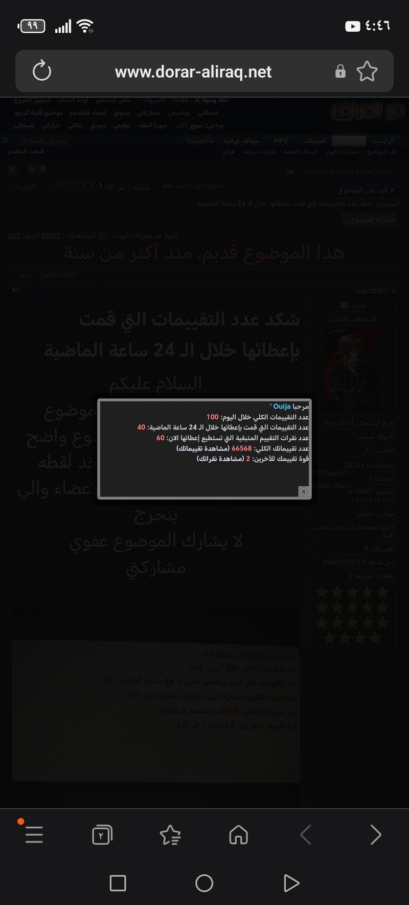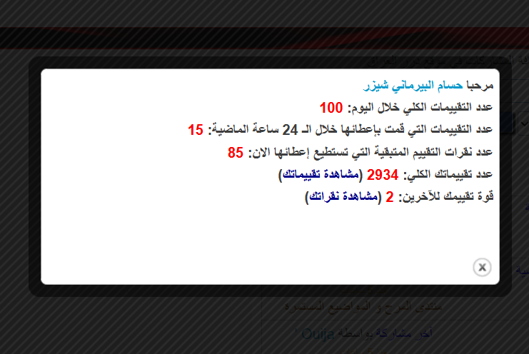 عدد نقرات التقييم المتبقية التي تستطيع إعطائها الان: 99