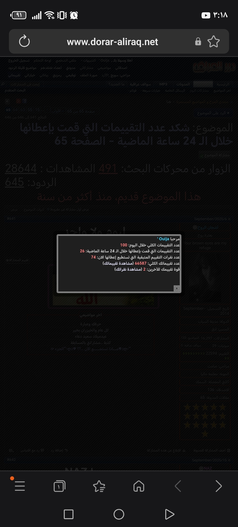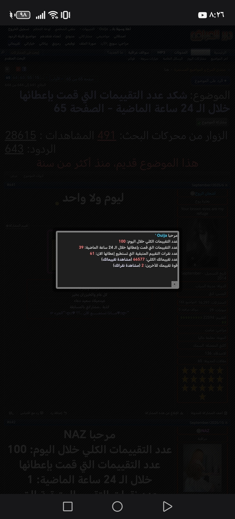 عدد التقييمات التي قمت بإعطائها خلال الـ 24 ساعة الماضية: 1