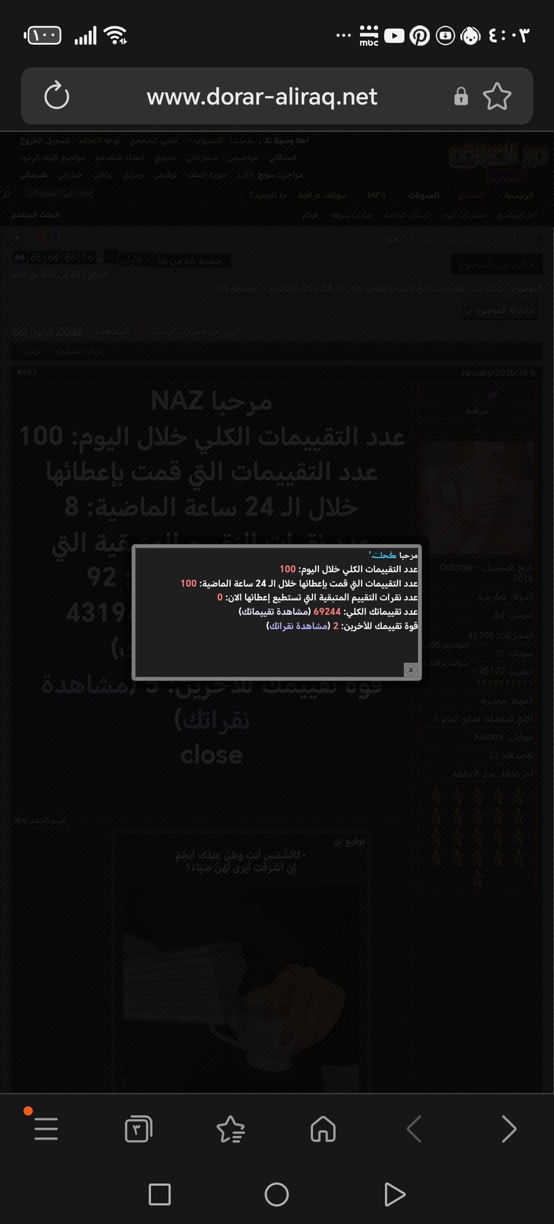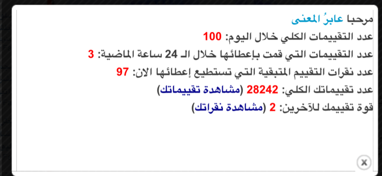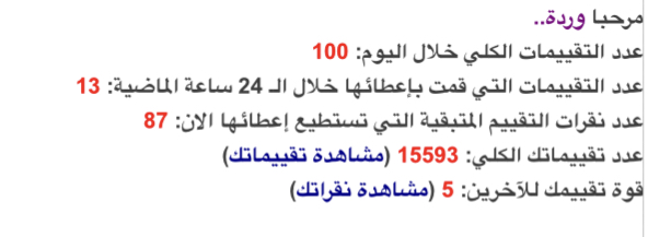 شكد عدد التقييمات التي قمت بإعطائها خلال الـ 24 ساعة الماضية - الصفحة 66
