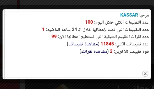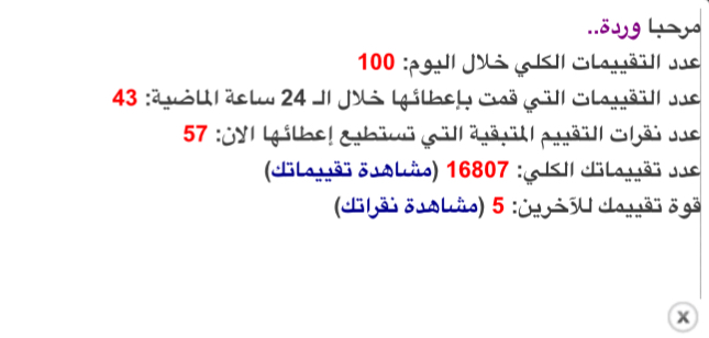عدد نقرات التقييم المتبقية التي تستطيع إعطائها الان: 78