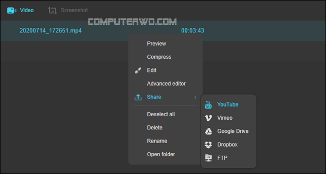 كما باستطاعتك رفع ومشاركة الفيديو المُسجل على يوتيوب وفيميو ودروبوكس وما إلى ذلك من الخواص والخدمات الرائعة التي تجذب المستخدم إليه، فعند الانتهاء من تصوير فيديو لشرح معين والقيام بكافة الإجراءات المطلوبة والاستفادة من كافة خصائص البرنامج، يُمكن تصدير الفيديو مُباشرةً إلى اليوتيوب استثماراً للوقت.