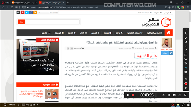 ولن تتوقف المزايا عند هذا الحد بل يوجد المزيد منها كـ وظائف التحرير والتعديل المُتقدمة على الفيديو مثل الضوء الموضعي لمعرفة ما الذي يجري على الشاشة بوضوح والزوم لتكبير عنصر ما وإبراز نوع من التركيز عليه ولقطات الشاشة والتعليق أثناء التسجيل والكتابة ما إلى ذلك من الأدوات الجذابة كما توضح الصورة أعلاه.