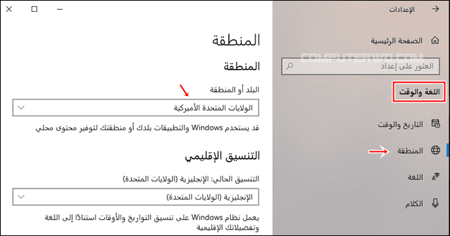 افتح صفحة التطبيق في متصفحك وقم بتصغير نافذة المتصفح، ثم افتح تطبيق الإعدادات وانتقل إلى الوقت واللغة - Time & Language، وحدد علامة التبويب المنطقة - Region، افتح القائمة المنسدلة للبلد أو المنطقة وحدد بعد ذلك الدولة التي يتوفر بها التطبيق، على سبيل المثال، تطبيق Hulu متاح في الولايات المتحدة.