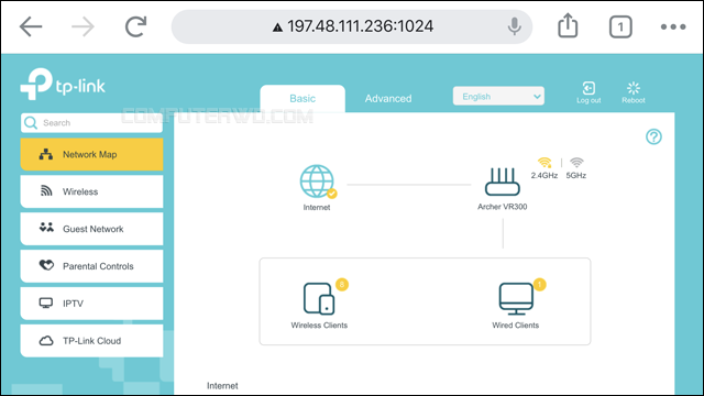 ستظهر صفحة التحكم في الراوتر بشكلها المعتاد، حيث يمكنك الآن مراقبة حالة الشبكة، ومعرفة الاجهزة المتصلة بالراوتر وقطع الاتصال عنها، وأيضًا فصل الواي فاي نهائيًا، أو تغيير أي إعدادات مطلوبة... يمكنك فعل ما تشاء في الراوتر وأنت خارج المنزل، ولكن إذا كنت تعتمد على IP مُتغير، فلا تحاول إعادة تشغيل الراوتر من هذه الصفحة وإلا ستفقد القدرة على التحكم كما أشرنا سلفًا.