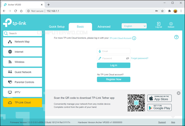 اذً كل ما عليك للاستخدام هذه الميزة هو فتح صفحة الراوتر ومن ثم الانتقال الي صفحة TP-Link Cloud من القائمة الجانبية وقم بتسجيل الدخول بمعرّف تي بي لينك اذا قمت بإنشاء واحدًا، وان لم تكن، فاضغط على Register Now وقم بإدخال بريدك الالكتروني وتعيين كلمة سر لانشاء TP-Link ID جديد، وبعدها سجل دخول به لتفعيل ميزة TP-Link Cloud.