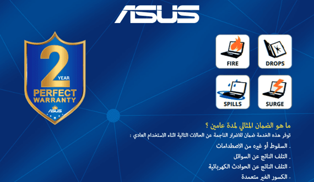 لابتوب VivoBook S14 S433F يأتي بضمان لمدة عامين ضد عيوب سوء الاستخدام، والذي قمنا بالتحدث عنه من قبل حيث أن شركة اسوس تقوم بتوفير ضمان مختلف عن الشركات الاخري وهي ضمان ضد عيوب الاستخدام، بمعني انه اذا سقط اللابتوب من يدك بالخطأ وانكسرت شاشة اللابتوب فستقوم شركة اسوس بصيانة او تغيير الشاشة لك مجاناً وبالتأكيد هذه النوعية من الضمان تقدم لاول مرة.
