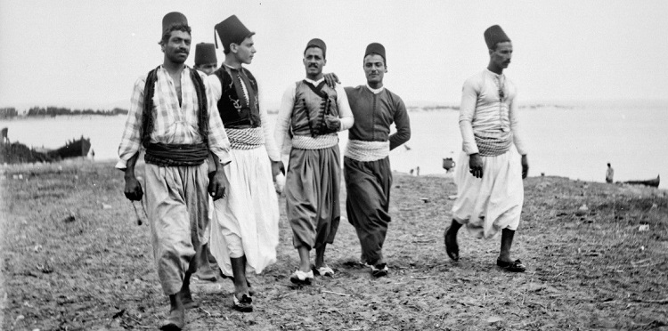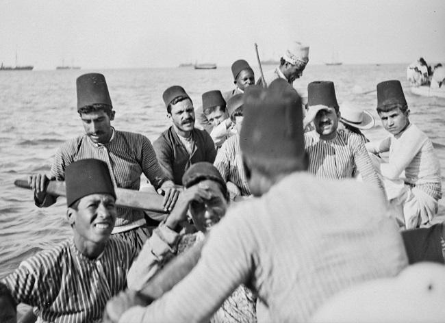 مجموعة من الشبان على شاطئ عكا عام 1891