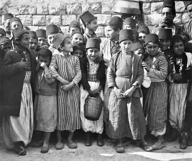 مجموعة من الصبية بطرابيشهم الصغيرة - الناصرة