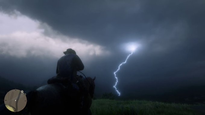 في لعبة Red Dead Redemption 2 من المحتمل أن تتعرض للصعق بالبرق اثناء العواصف الكبيرة حيث حدث ذلك للعديد من اللاعبين.