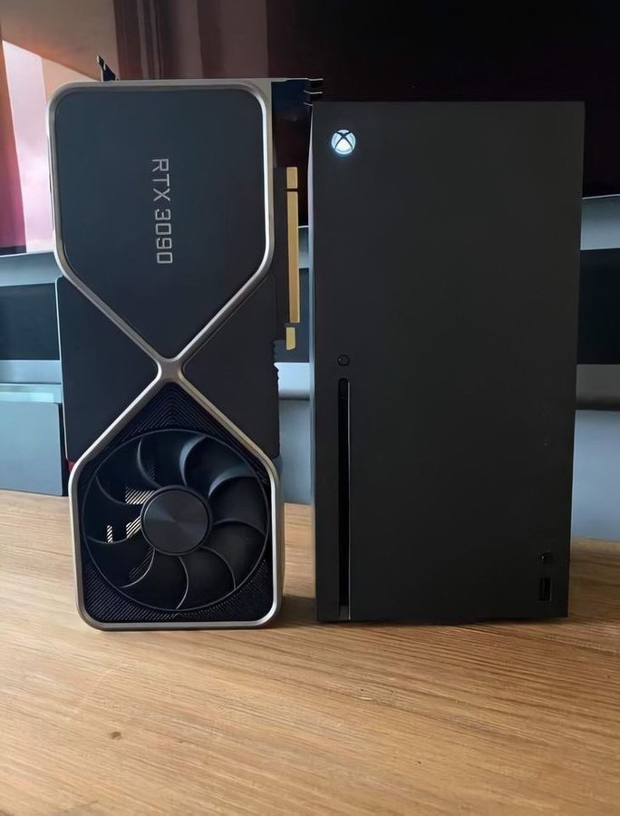 صورة توضح حجم كارت شاشة RTX 3090 بالمقارنة مع جهاز XBOX Series X!