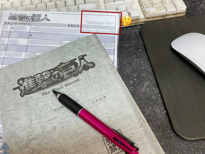 صورة قام احد العاملين من الموسم الاخير لAOT في الاستيديو بتنزيلها و مكتوب في احد الاوراق Part 1 !