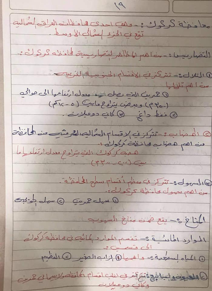 ملخص ماده الاجتماعيات للصف السادس ابتدائي محافظه كركوك