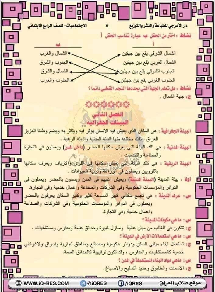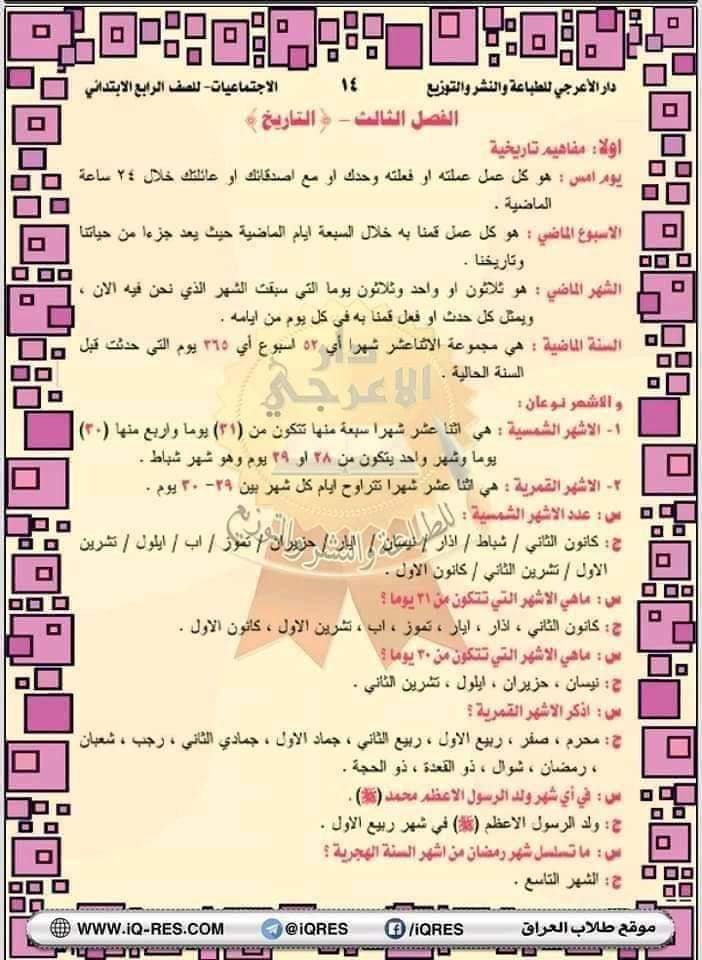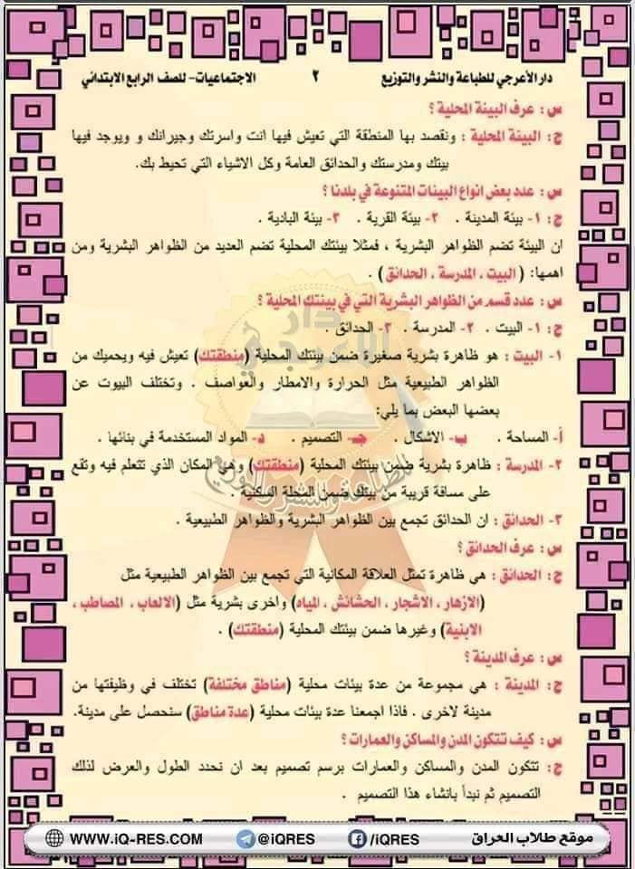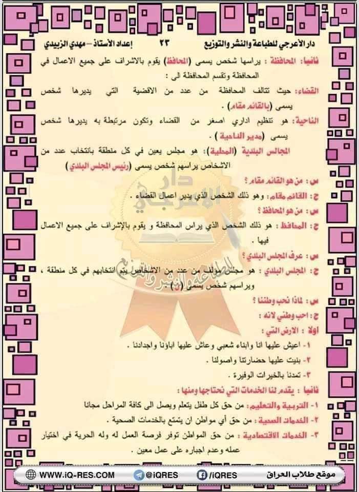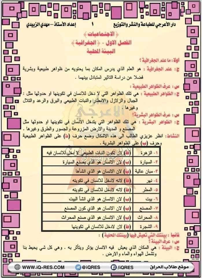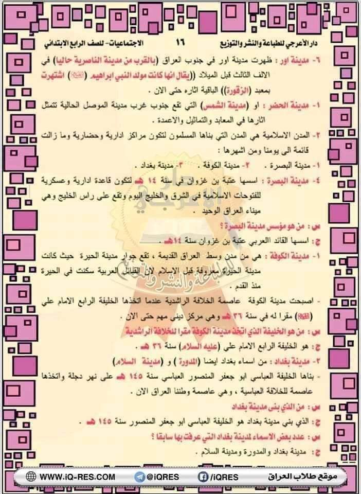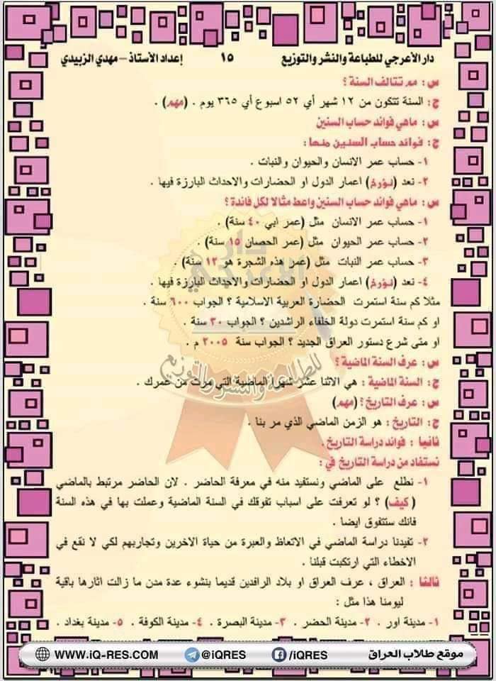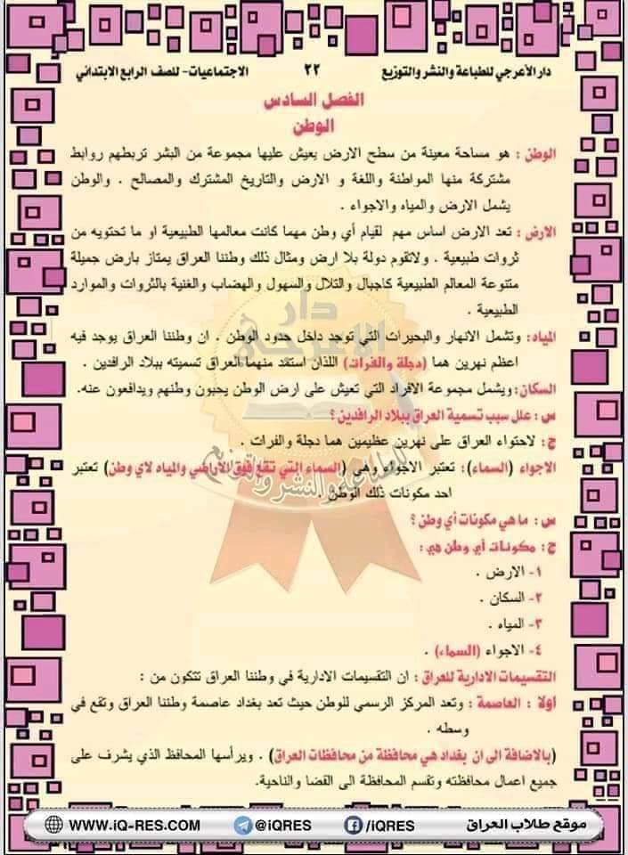 ملخص اجتماعيات صف الرابع الابتدائي اعداد الاستاذ مهدي الزبيدي