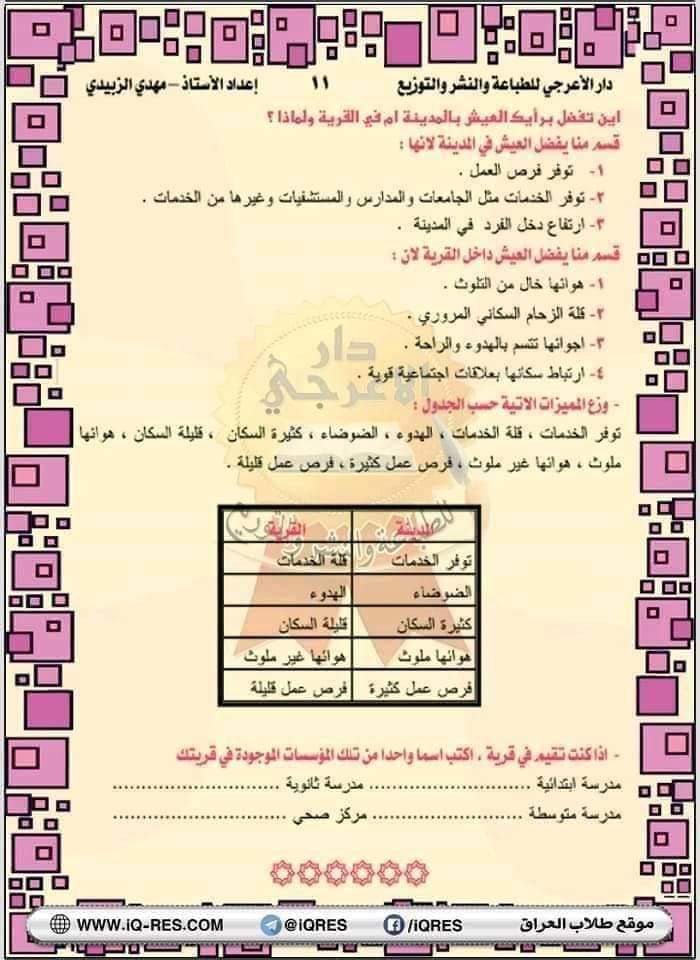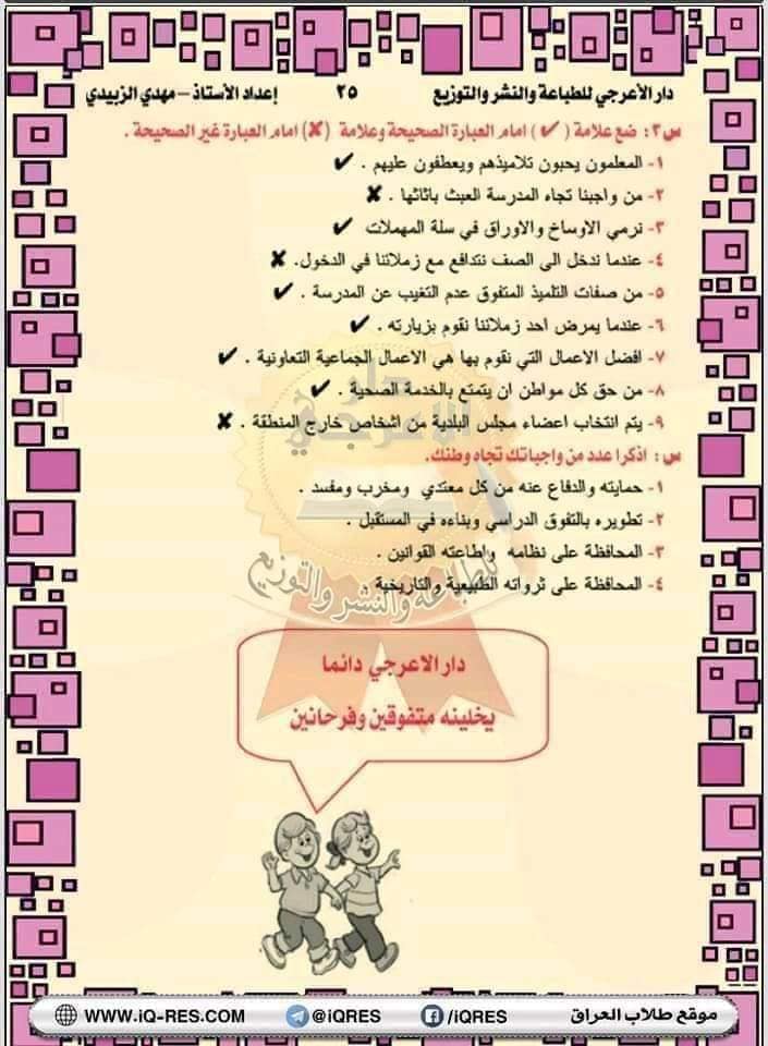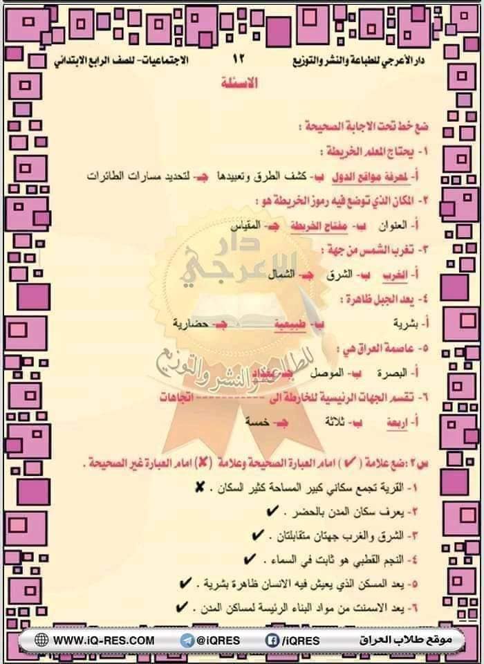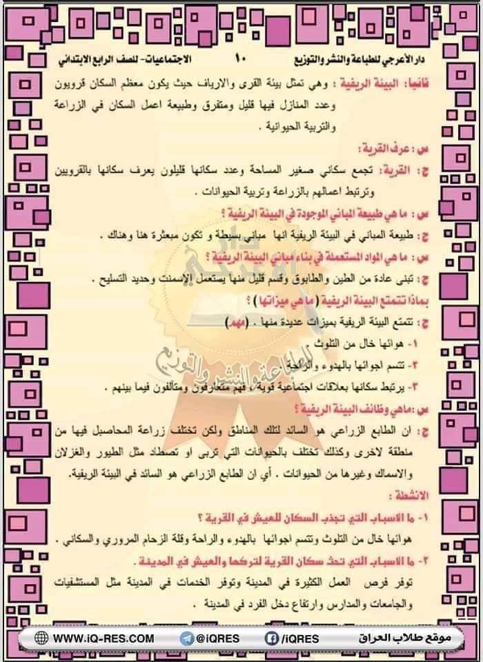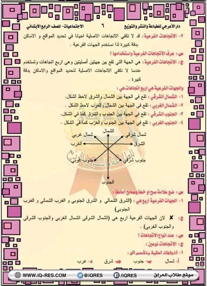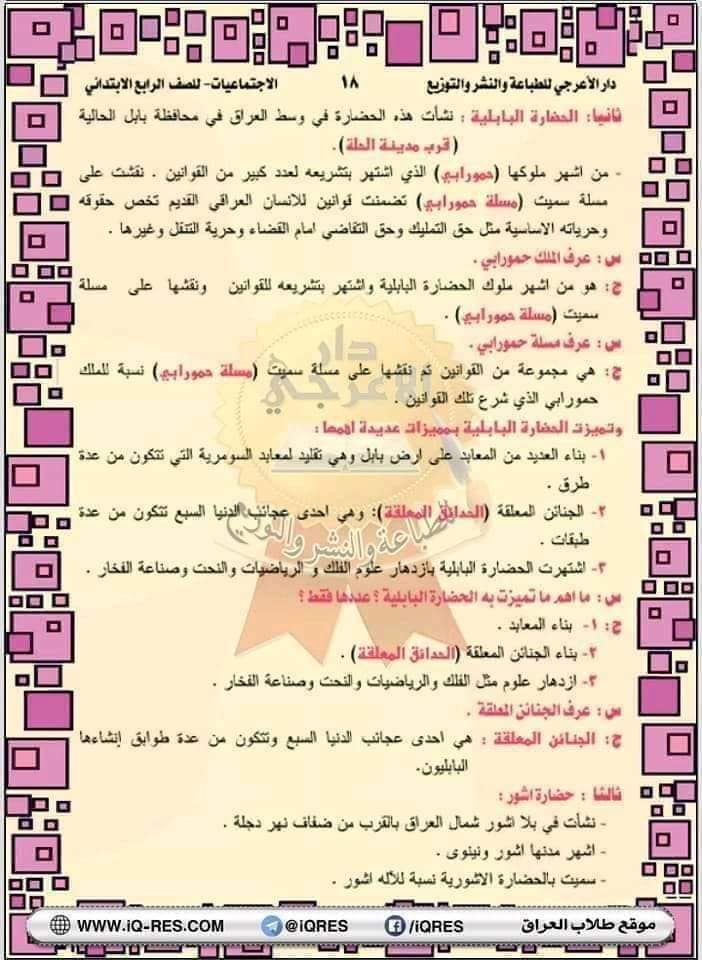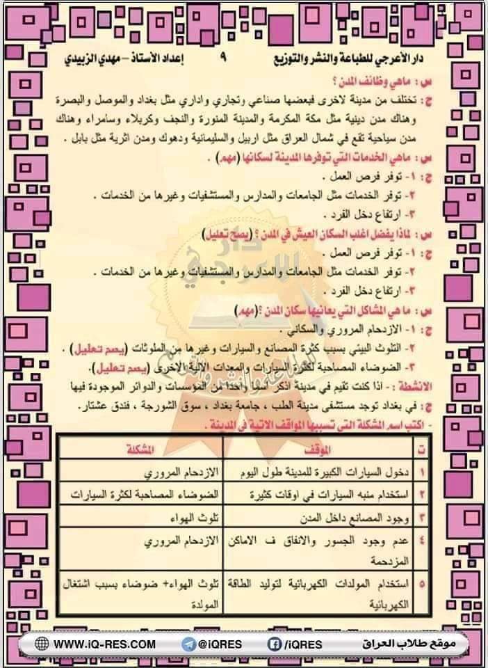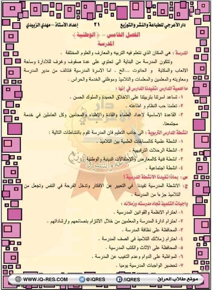 ملخص اجتماعيات صف الرابع الابتدائي اعداد الاستاذ مهدي الزبيدي