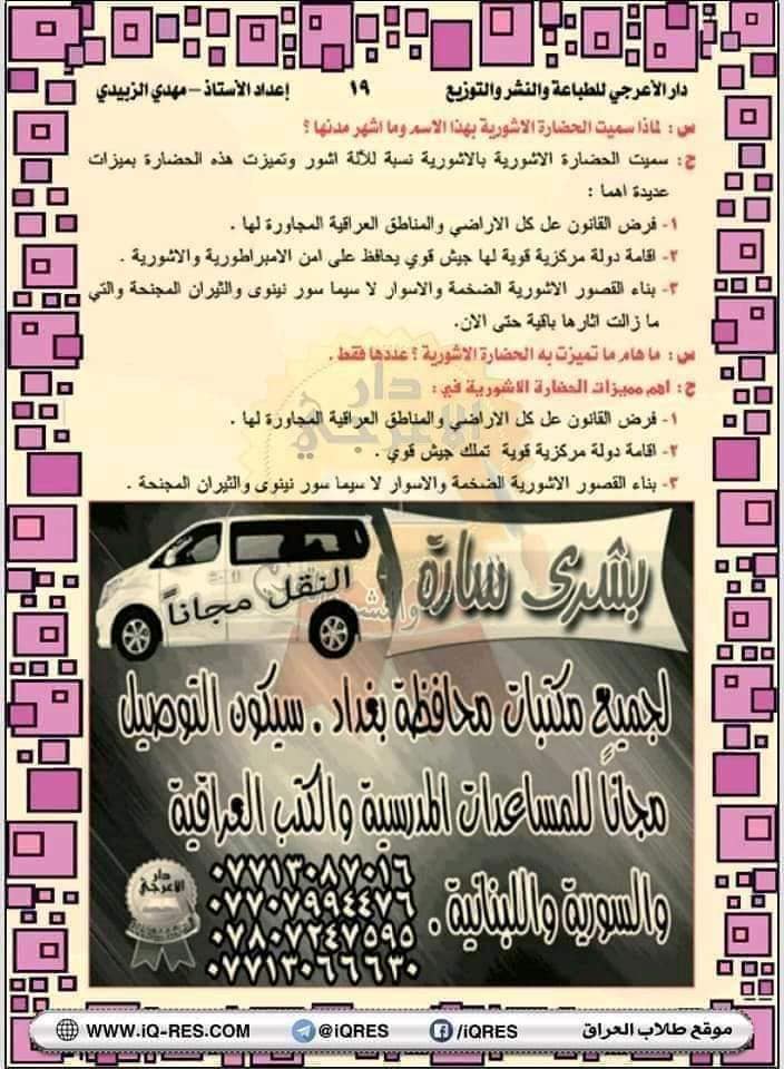 ملخص ماده الاجتماعيات للصف السادس ابتدائي محافظه اربيل