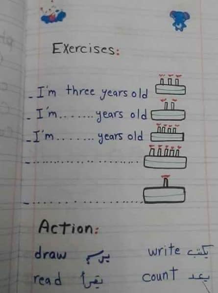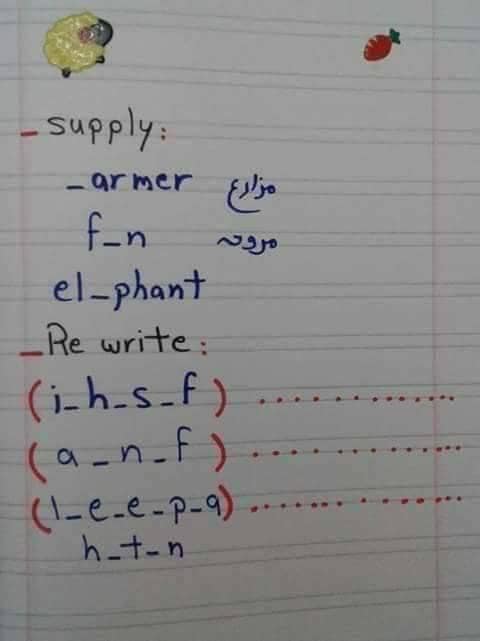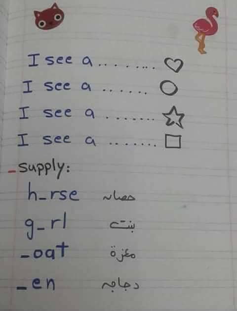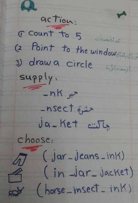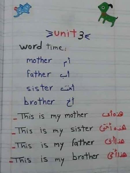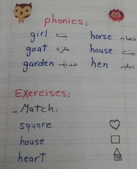 مُلخَص ماده اللُّغة الإنكليزية للصف الاول ابتدائي
