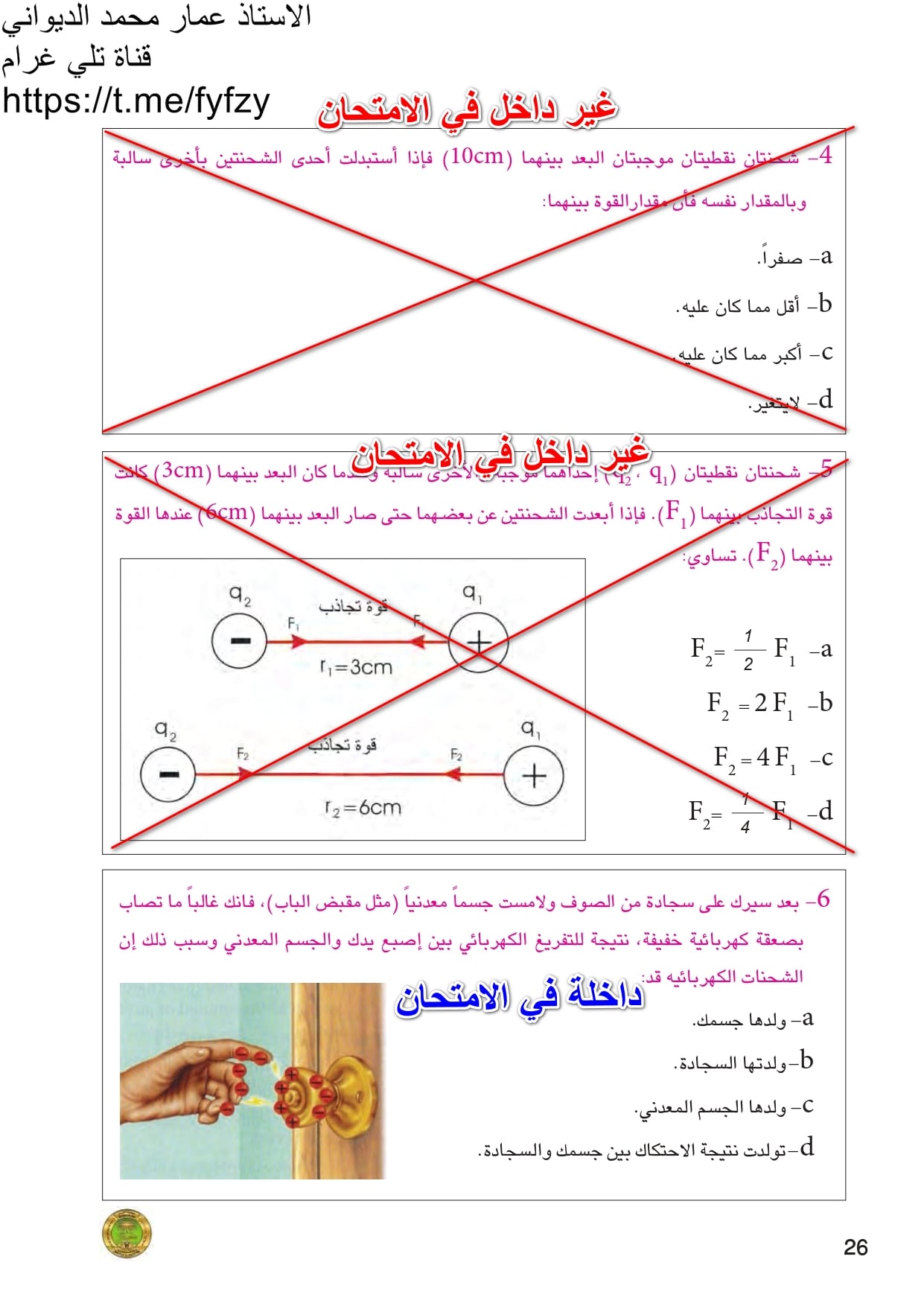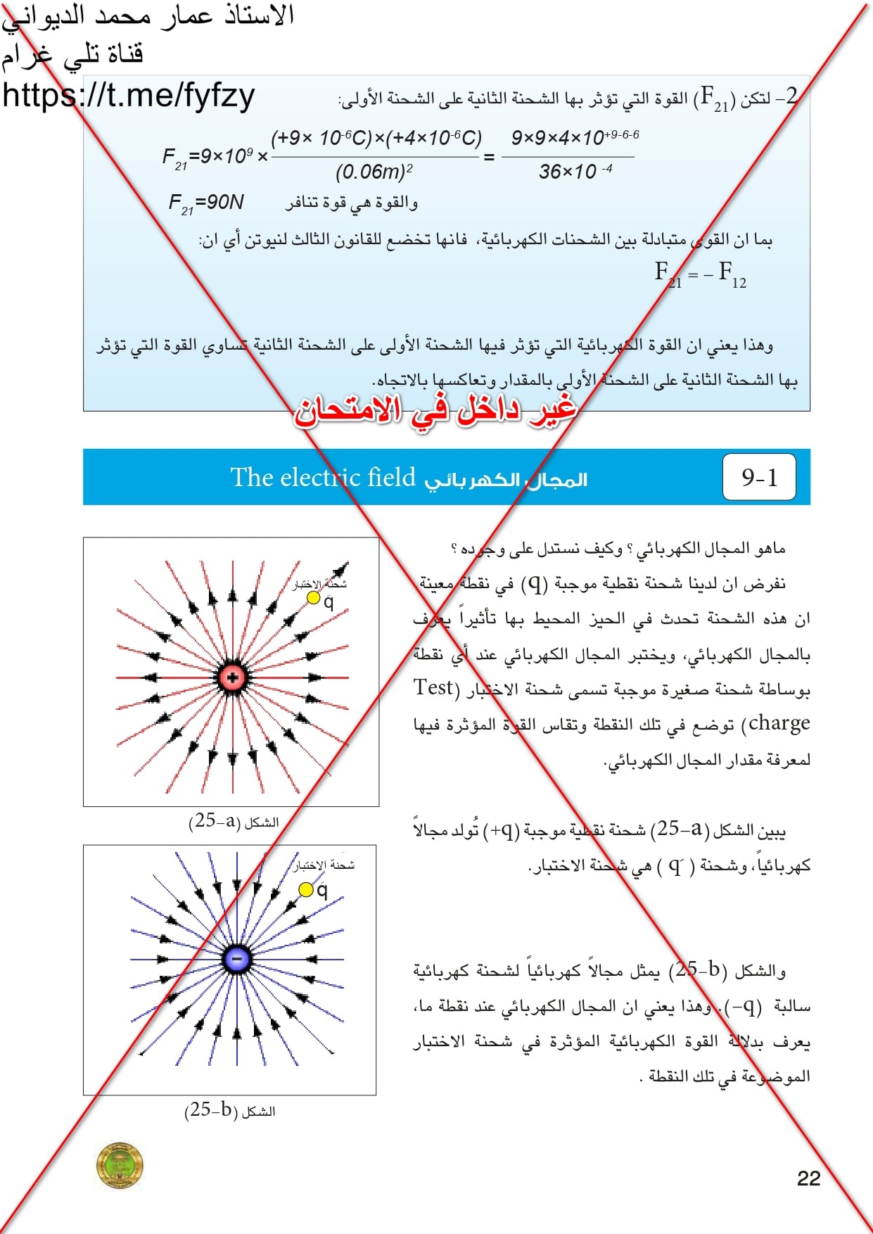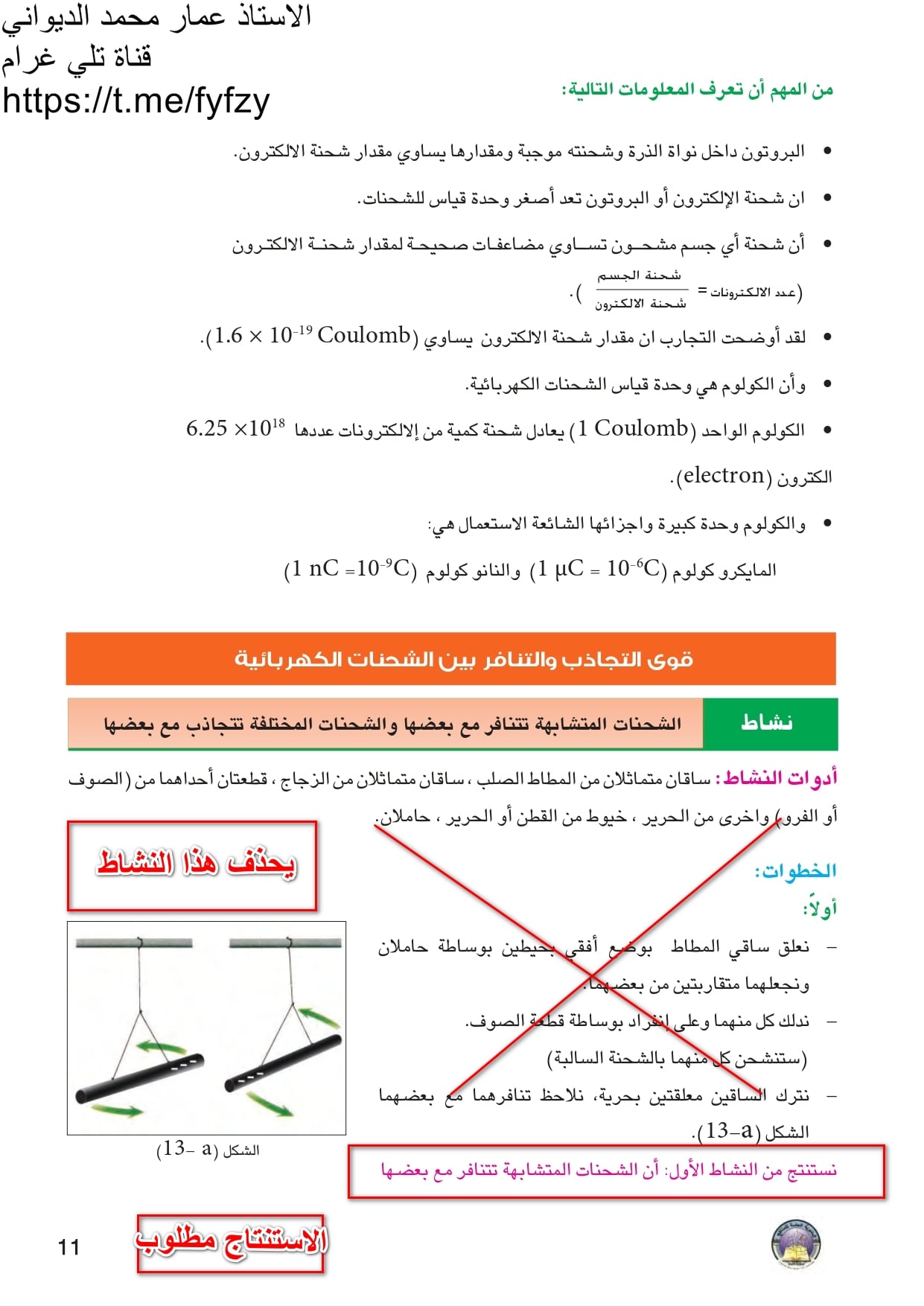 الفصل الاول من مادة الفيزياء للصف الثالث المتوسط المحذوفة من المنهج