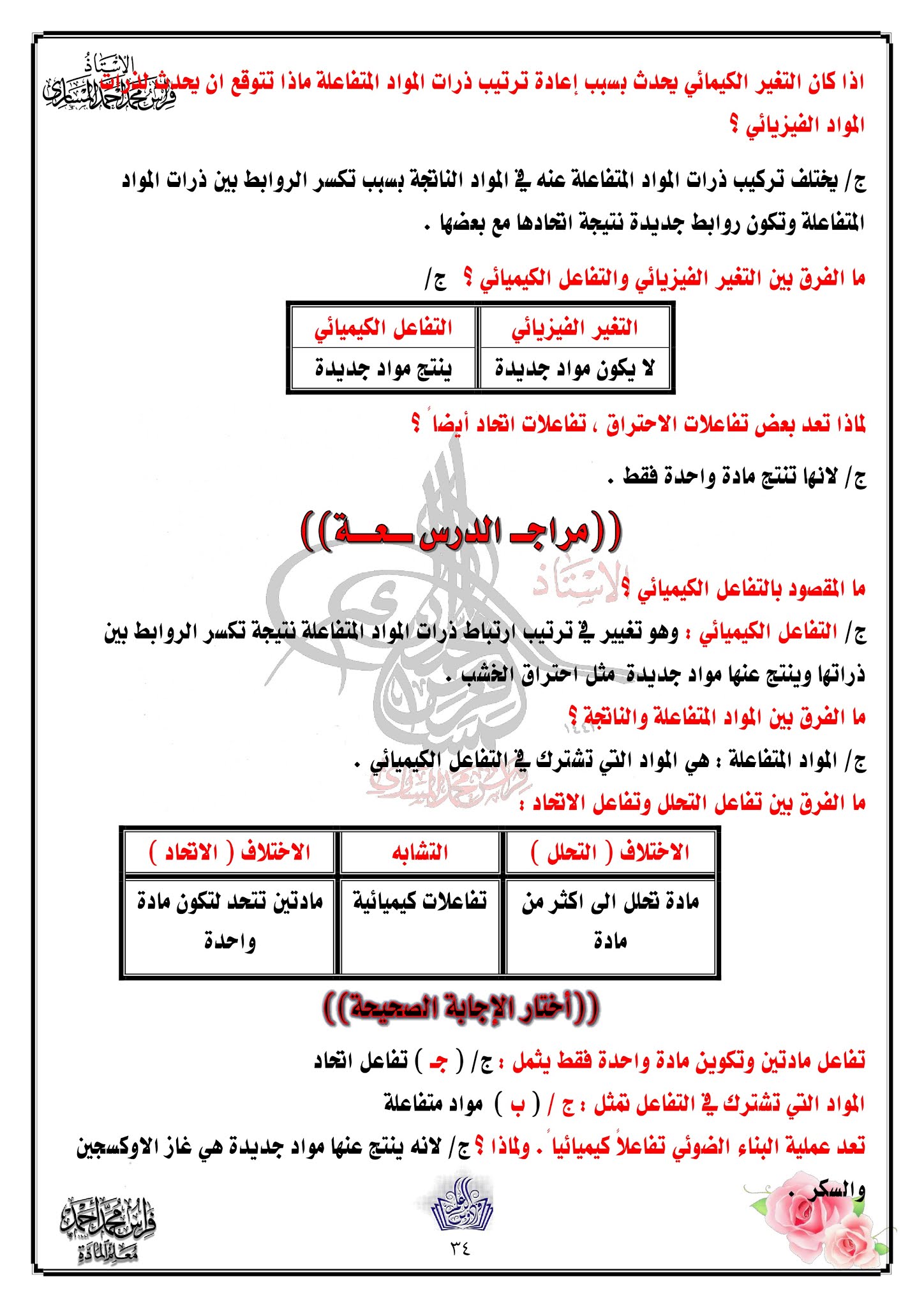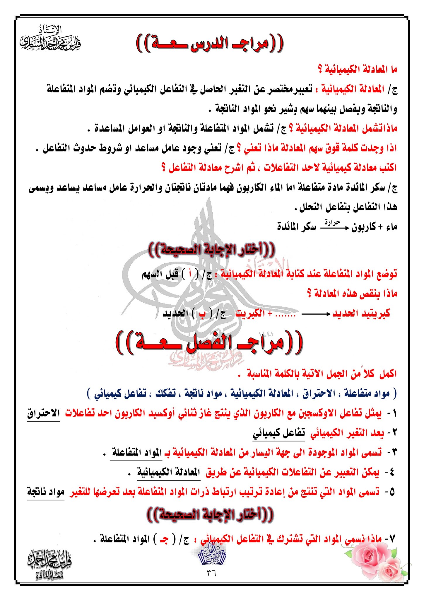 الوحدة الثالثة : الفصل السادس : التفاعلات الكيميائية
