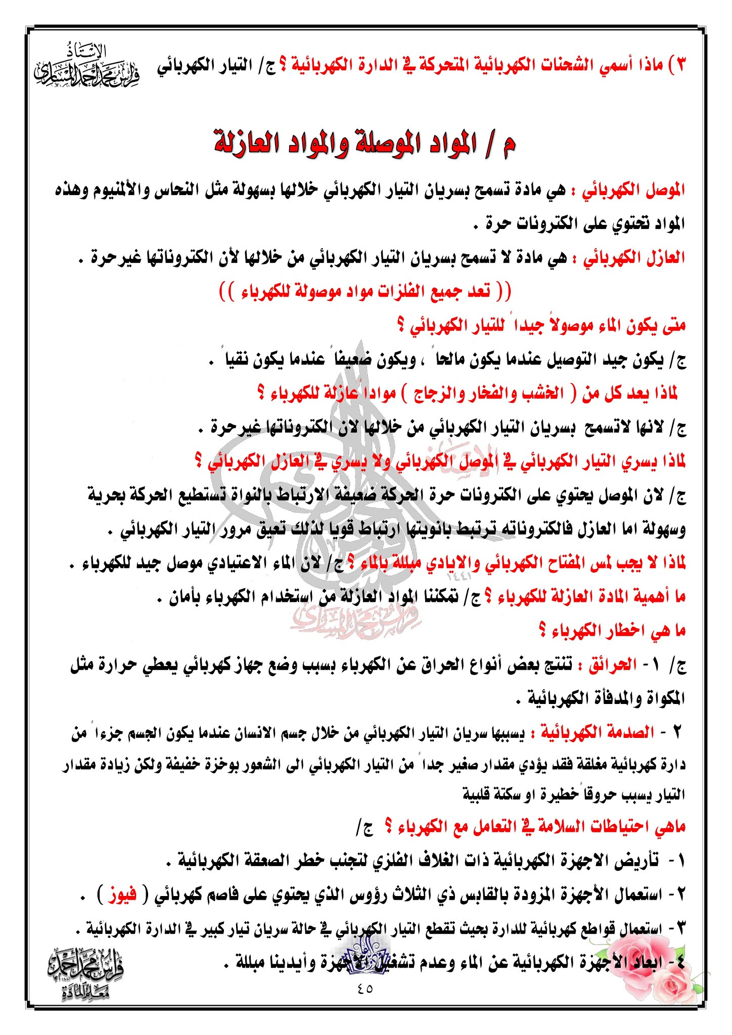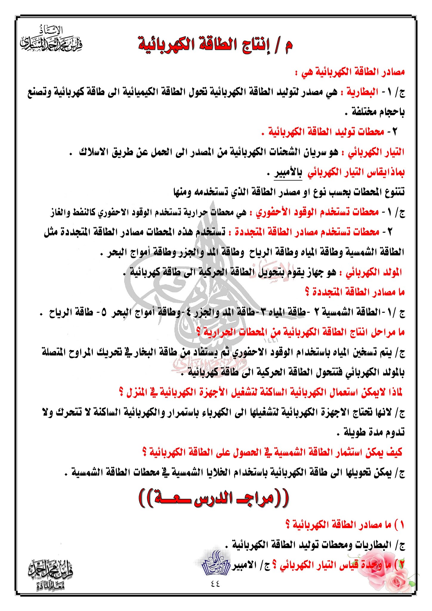 الوحدة الرابعة : الفصل الثامن : الطاقة الكهربائية