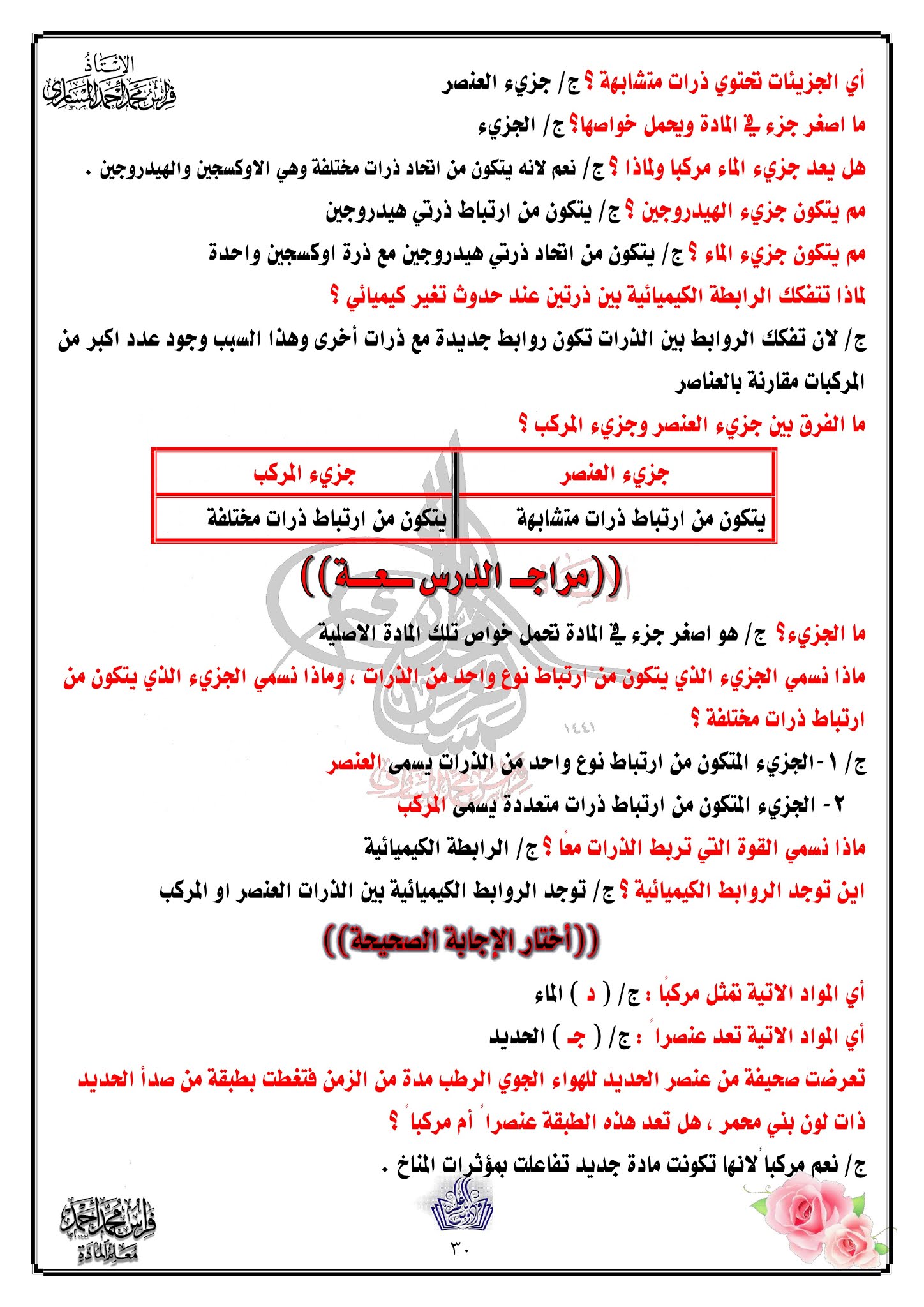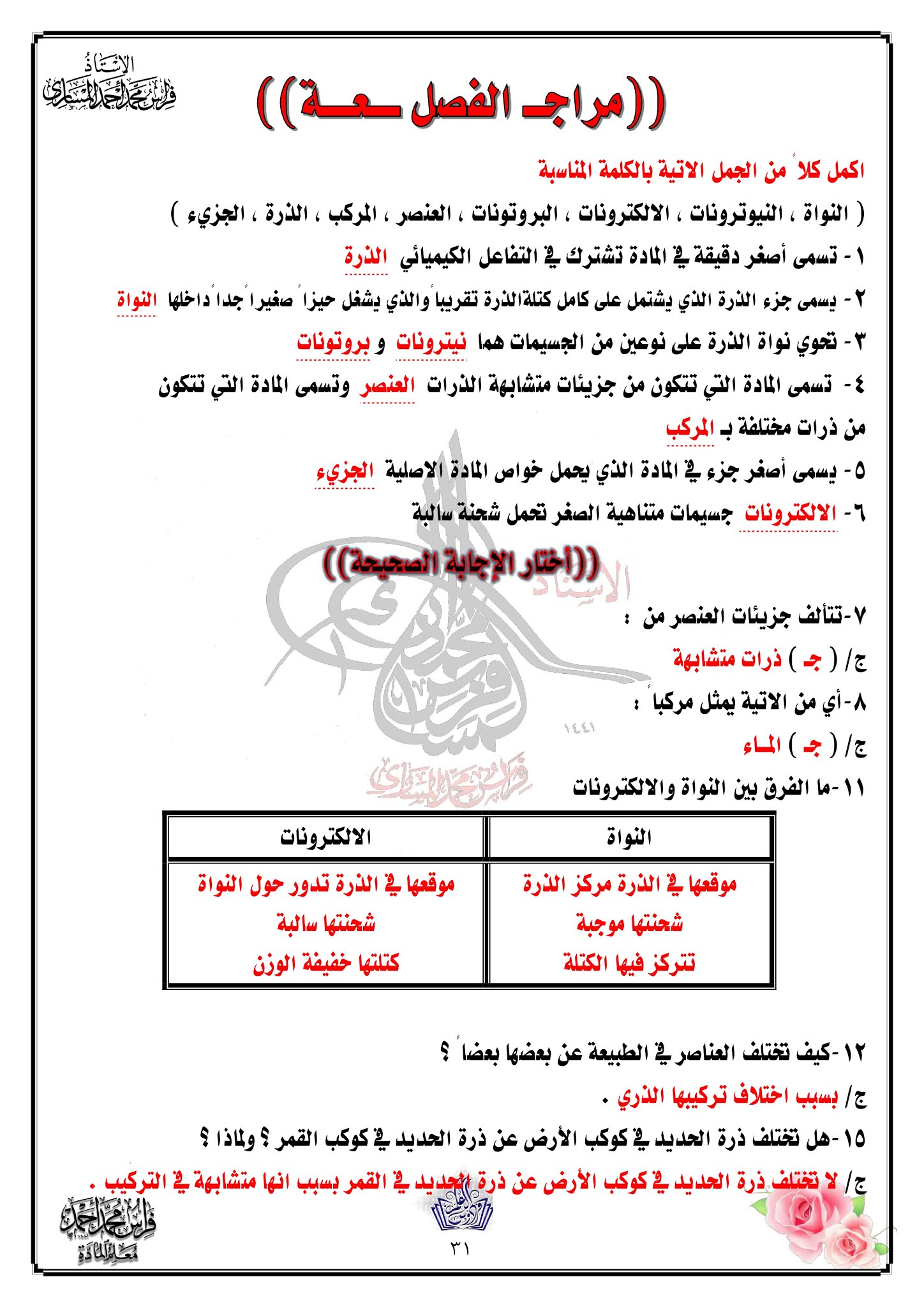 الوحدة الثالثة : الفصل الخامس : بناء المادة