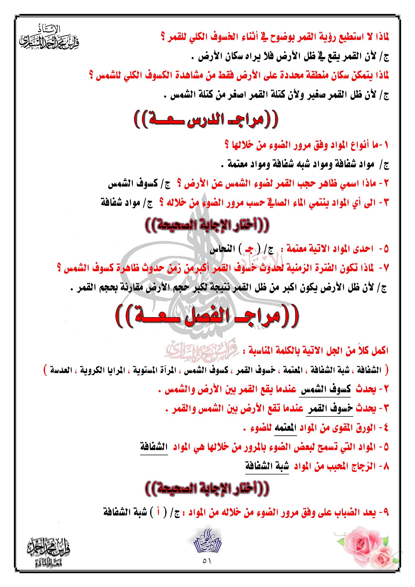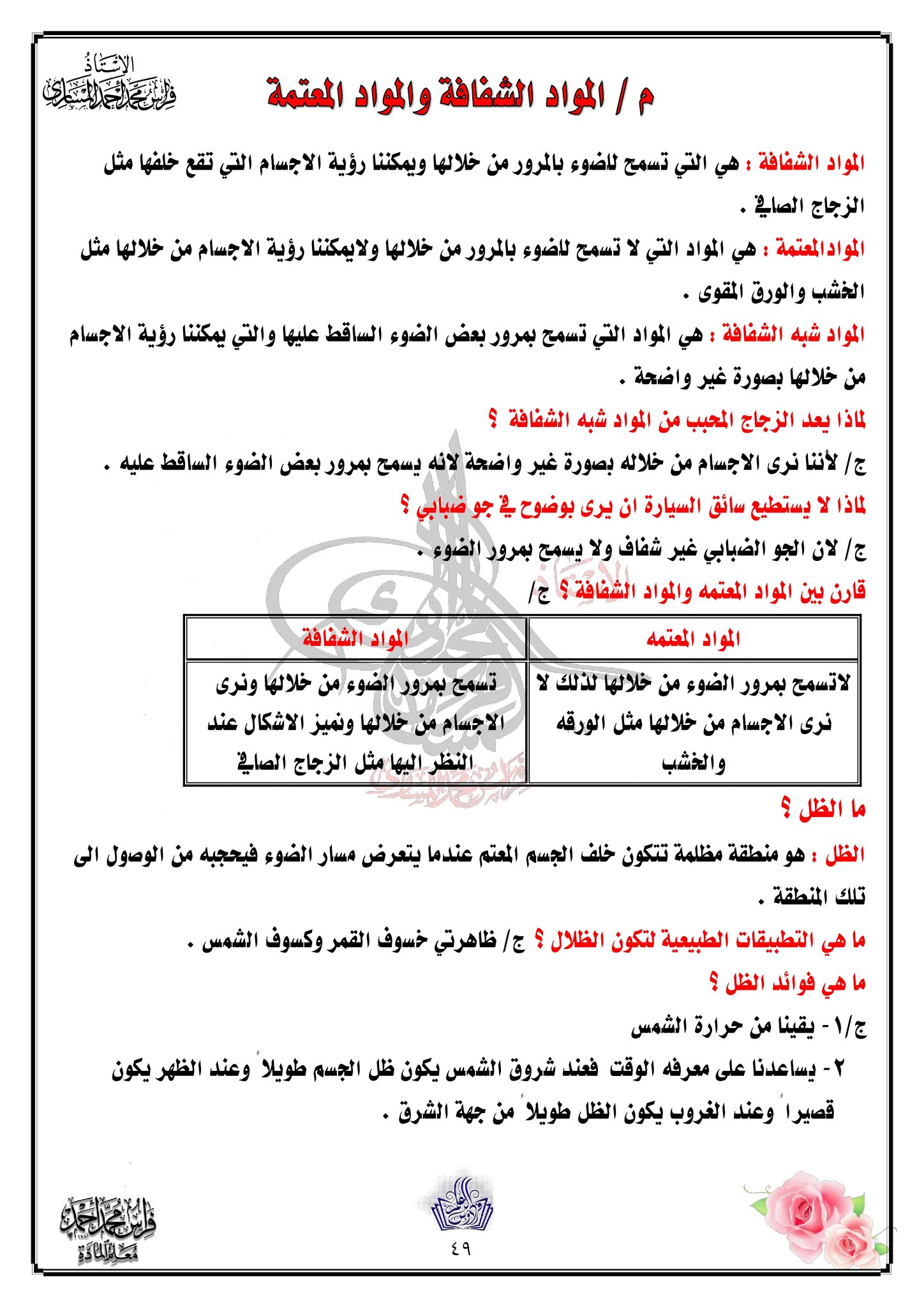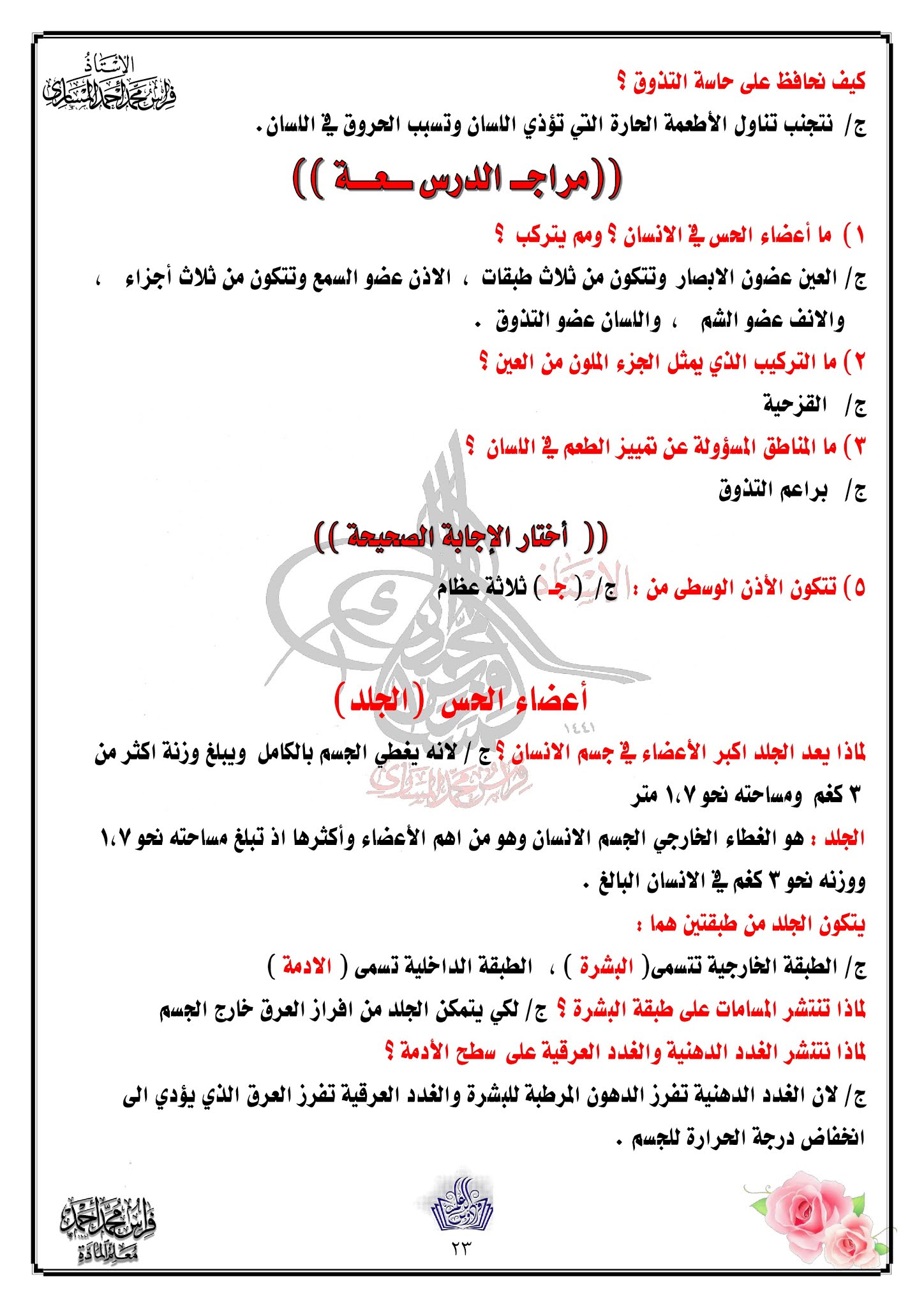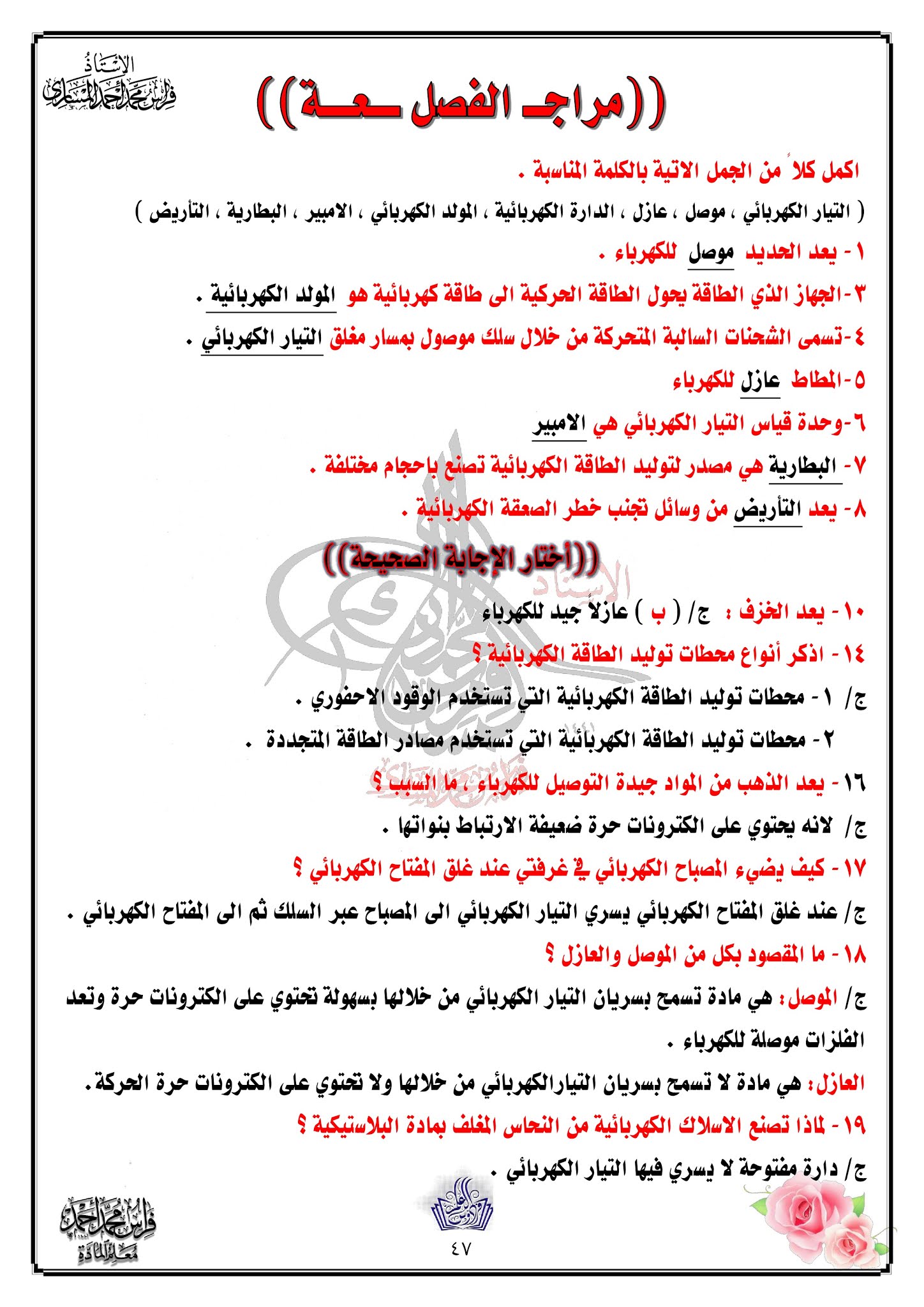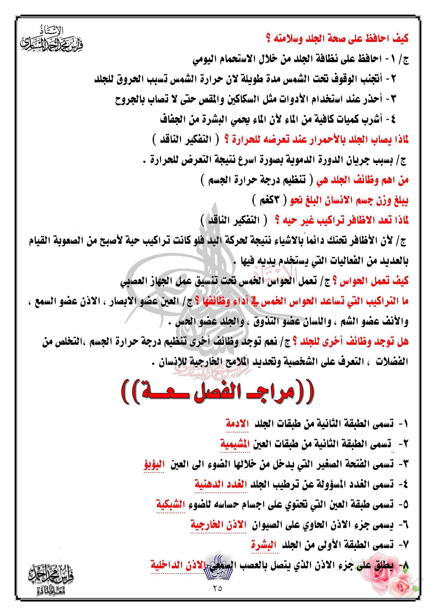 ملخص مادة العلوم لصف السادس الابتدائي حسب التكييف والحذف لوزارة التربية 2021