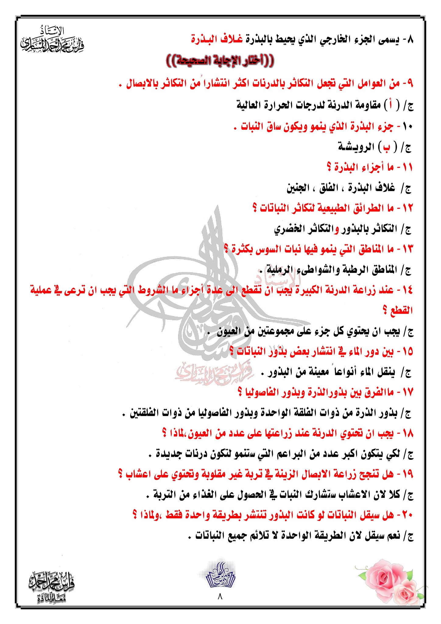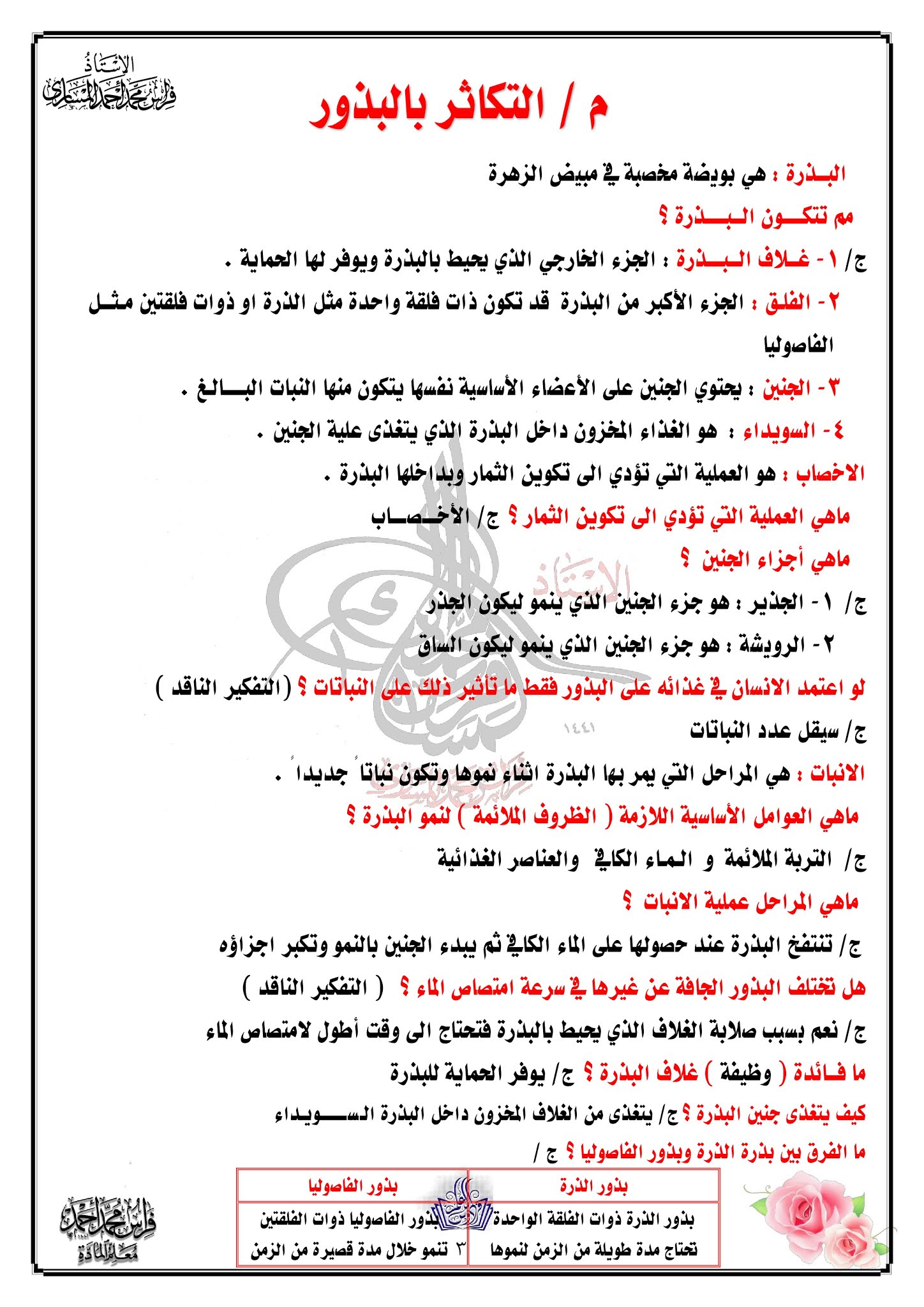 الوحدة الاولى : الفصل الاول : التكاثر الطبيعي في النباتات