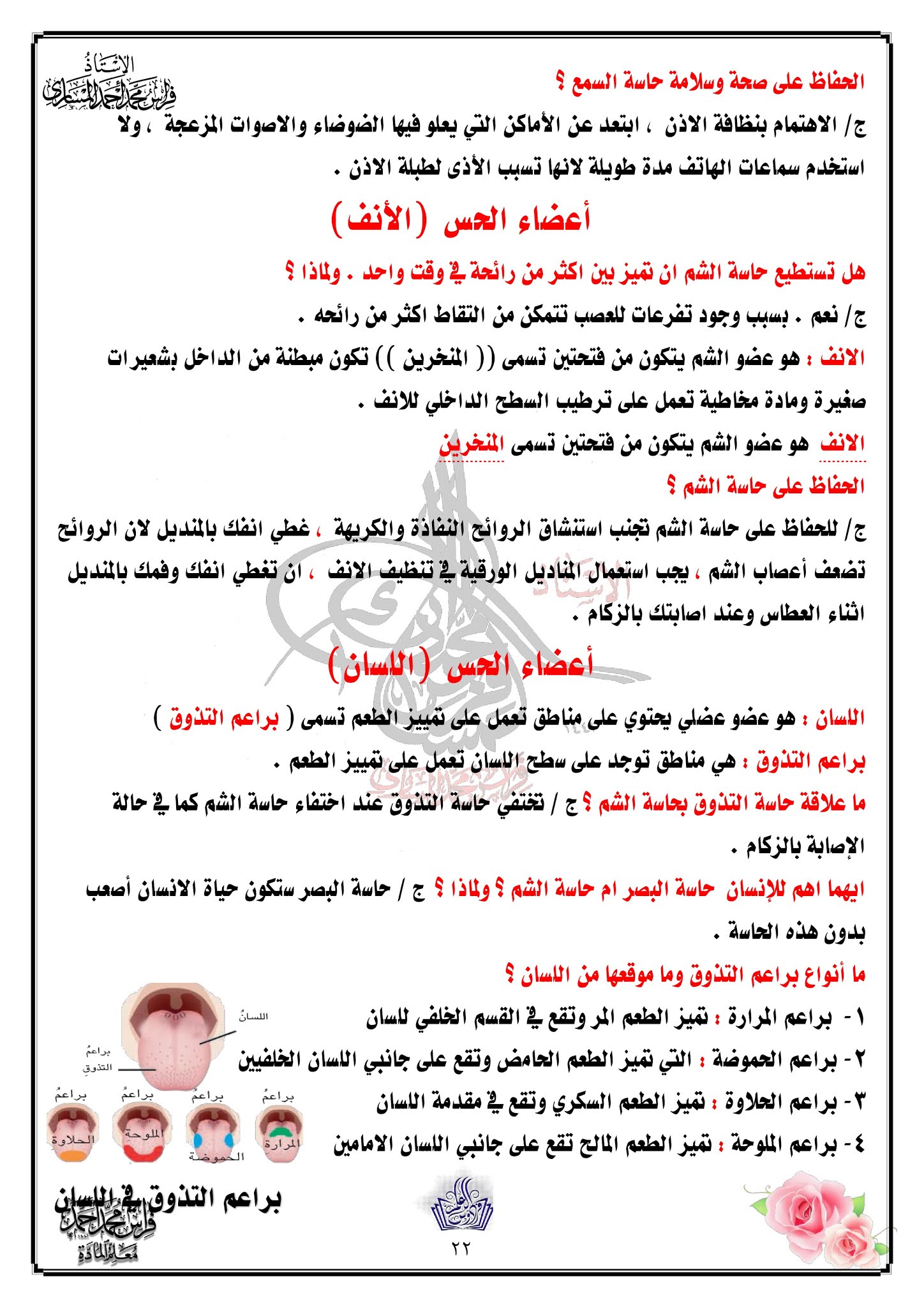 الوحدة الثانية : الفصل الرابع : الحس عند الانسان