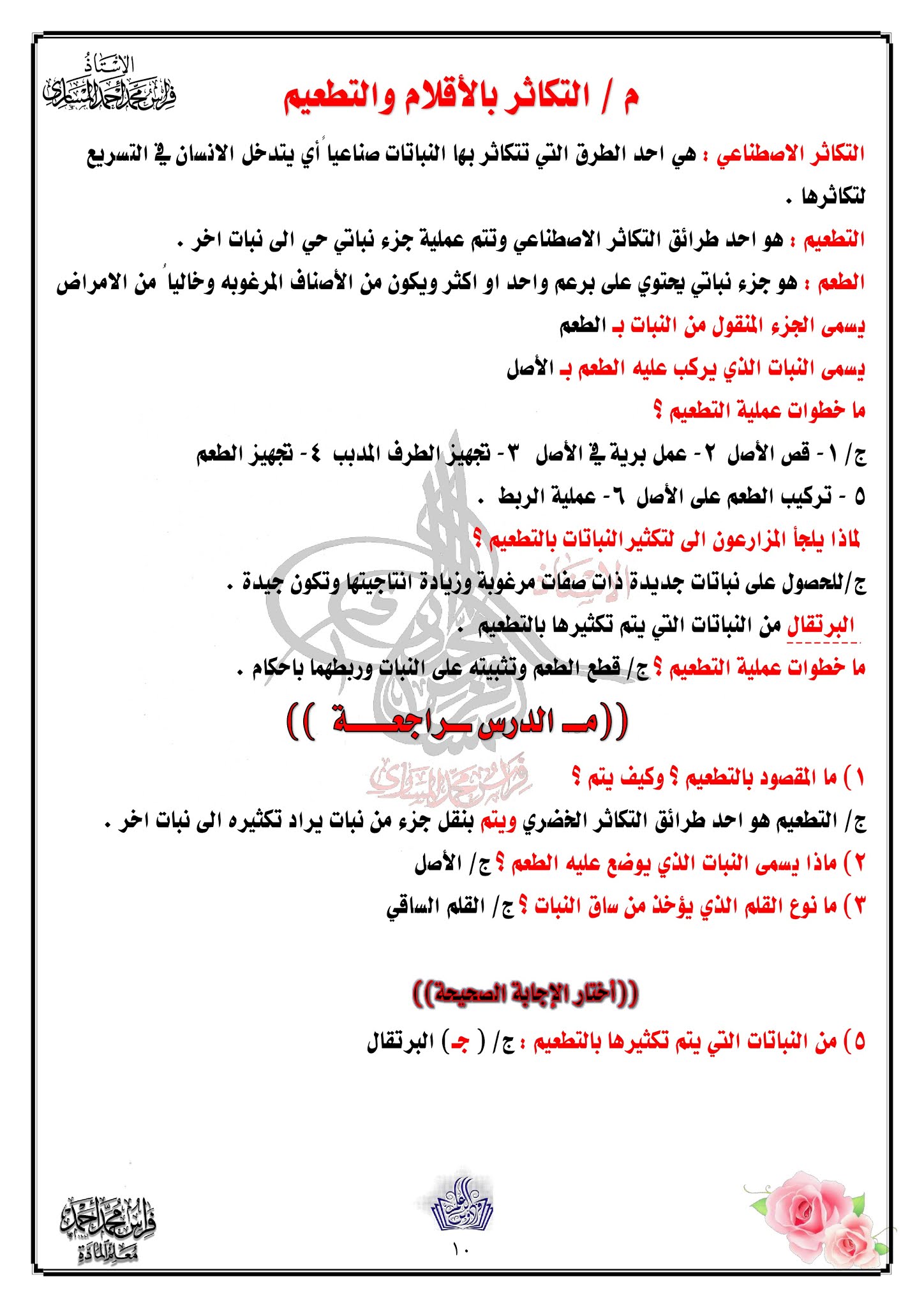الوحدة الاولى : الفصل الثاني : التكاثر الاصطناعي في النباتات