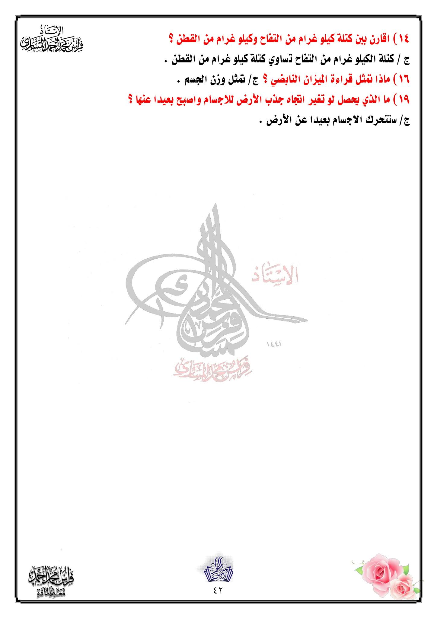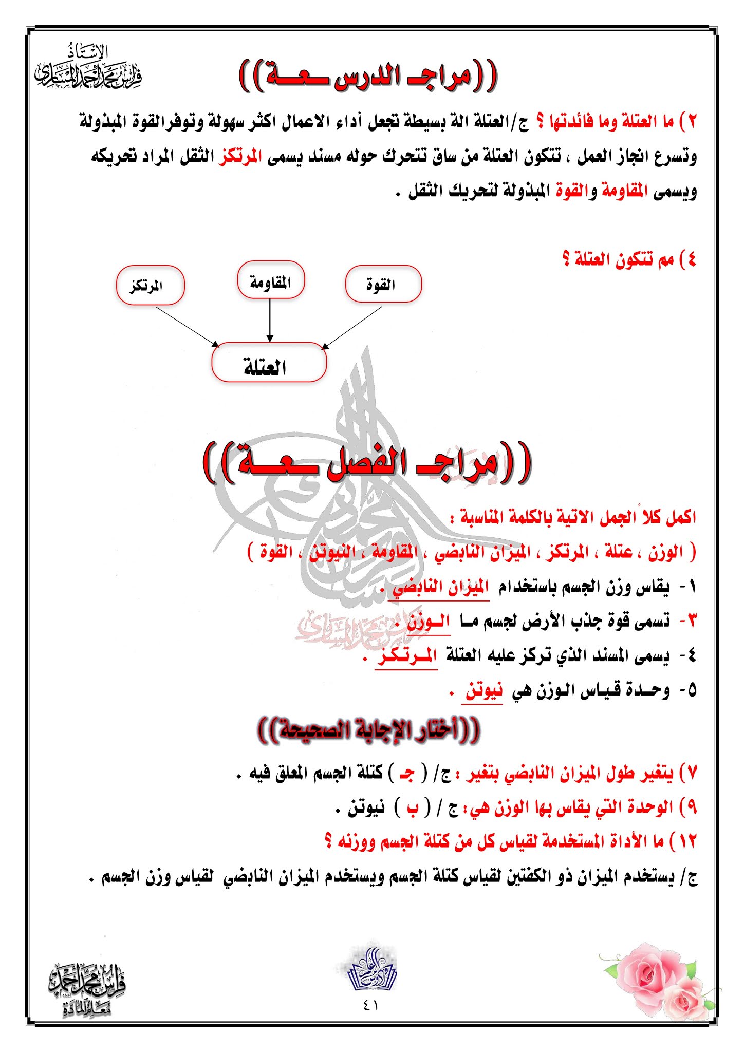 الوحدة الرابعة : الفصل السابع : الكتلة والوزن والالات البسيطة
