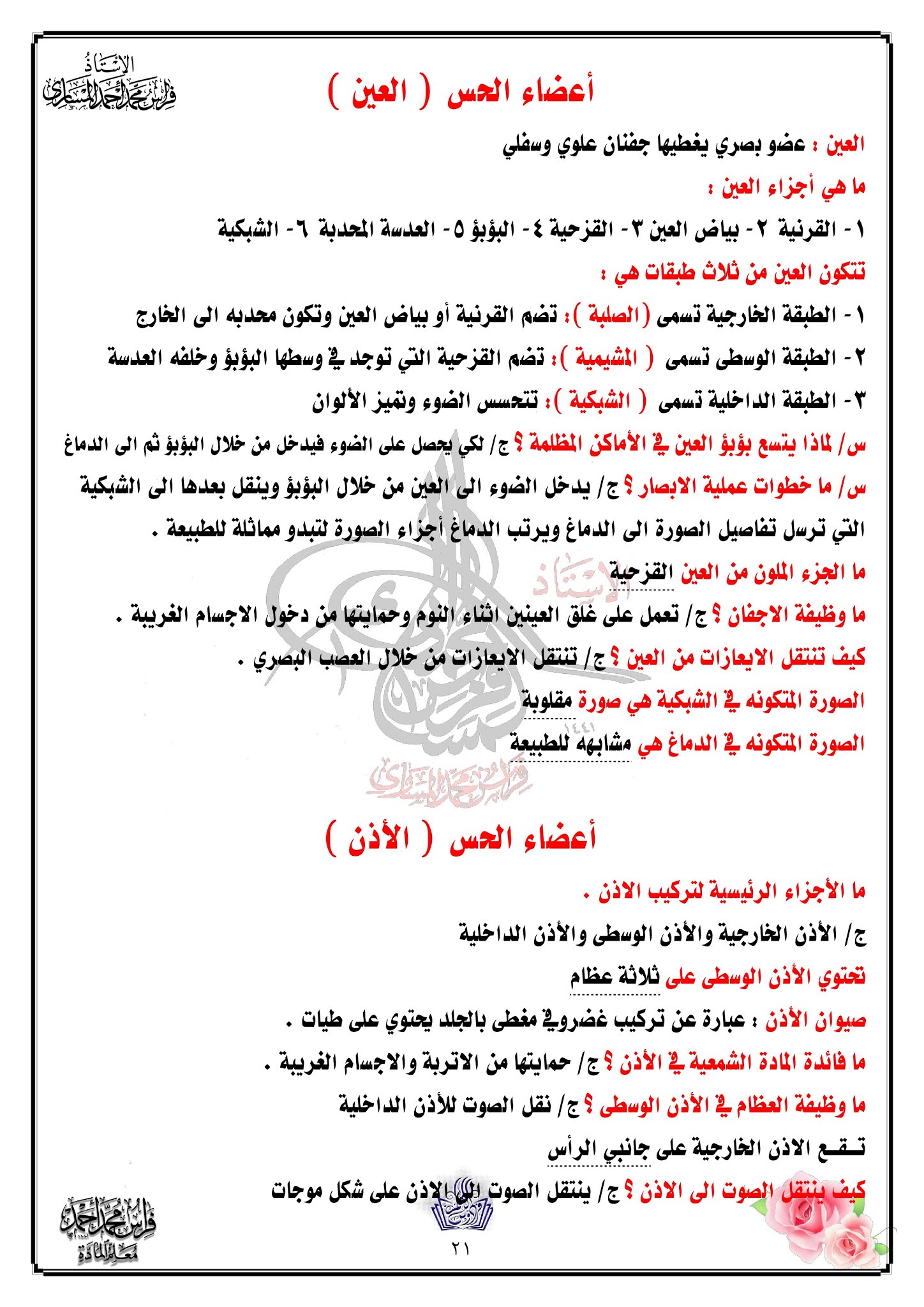 هذا ملخص علوم سادس ابتدائي حسب حذف الوزارة 2021 للعام الدراسي الجديد اعداد المعلم فراس محمد احمد