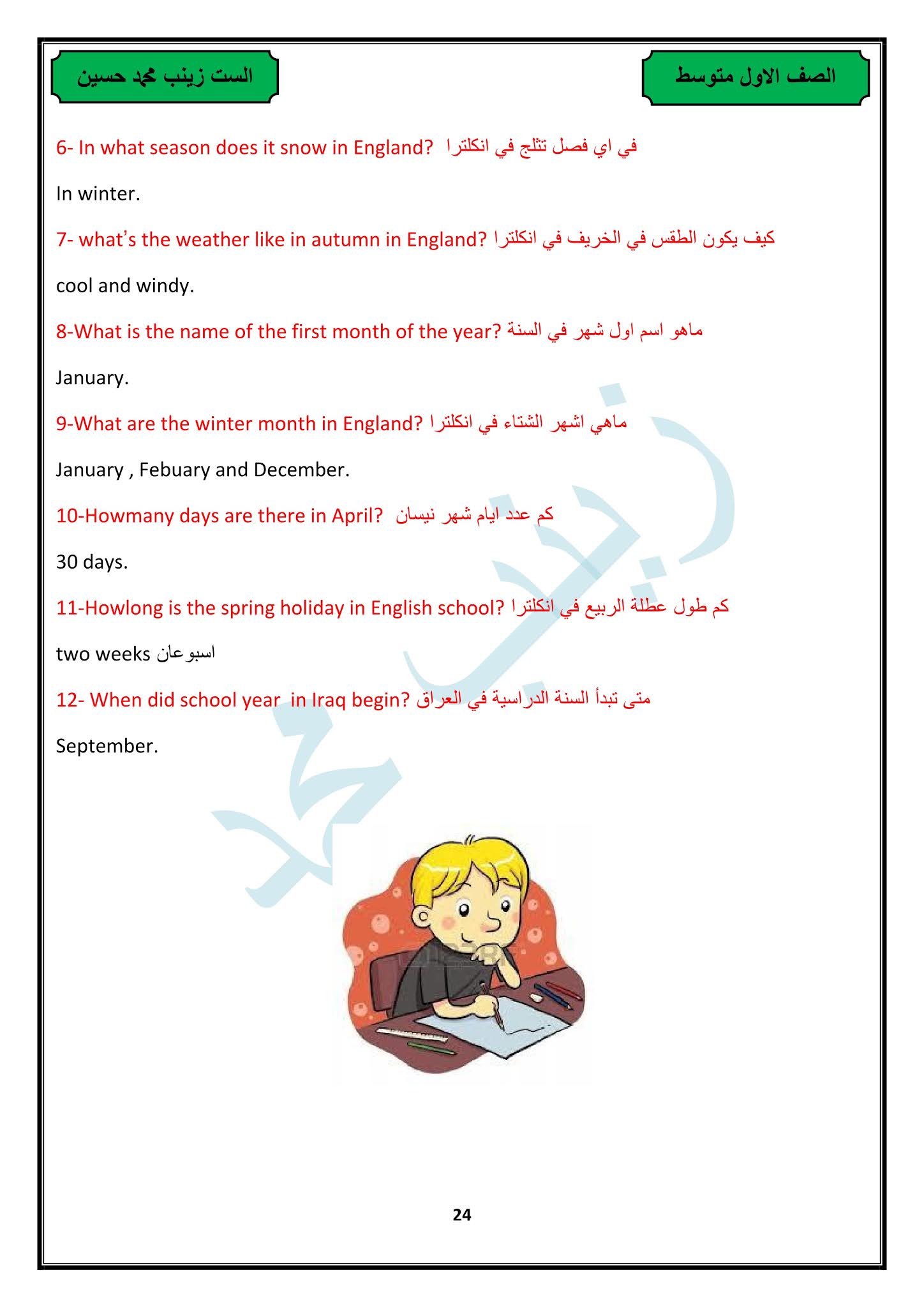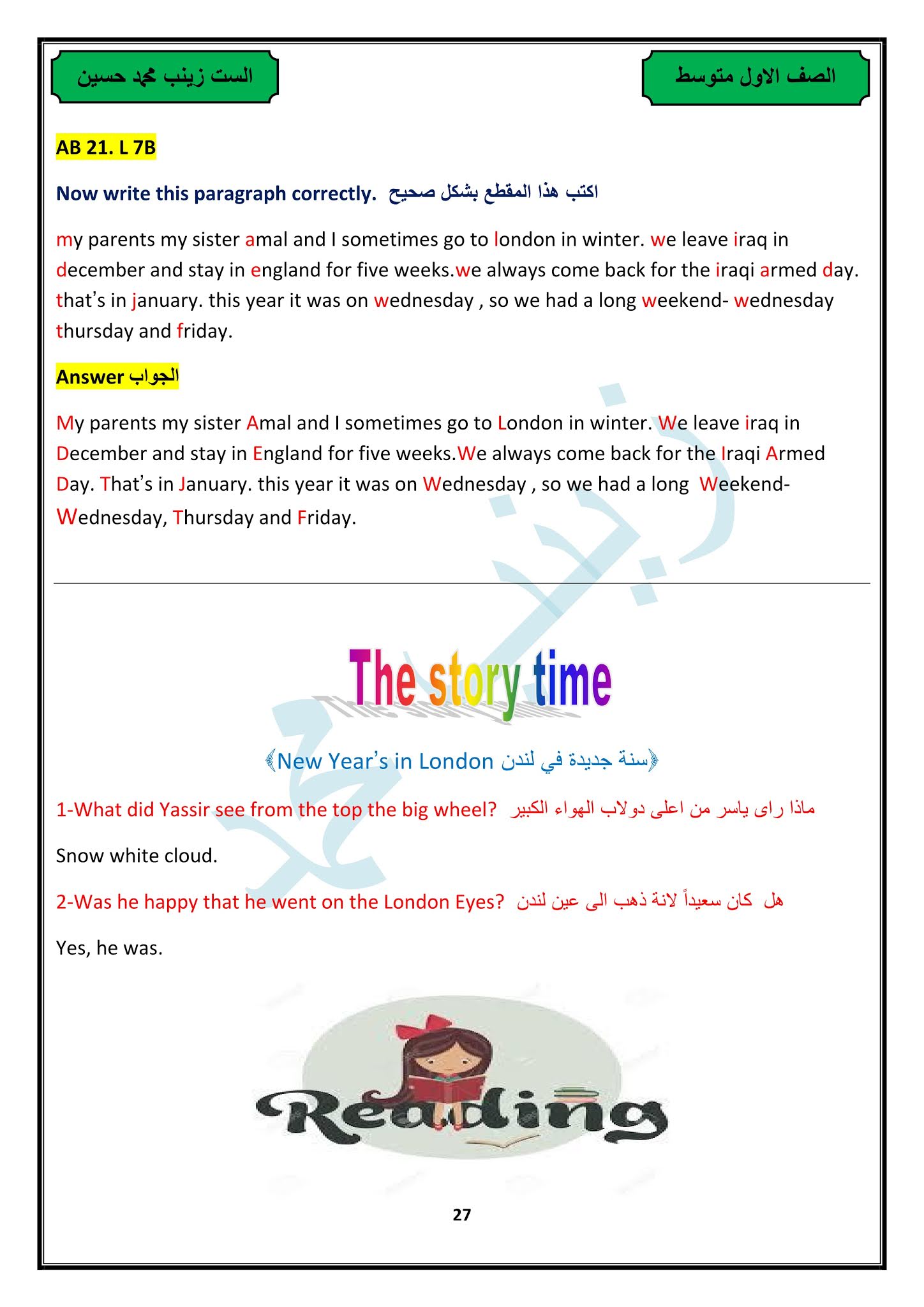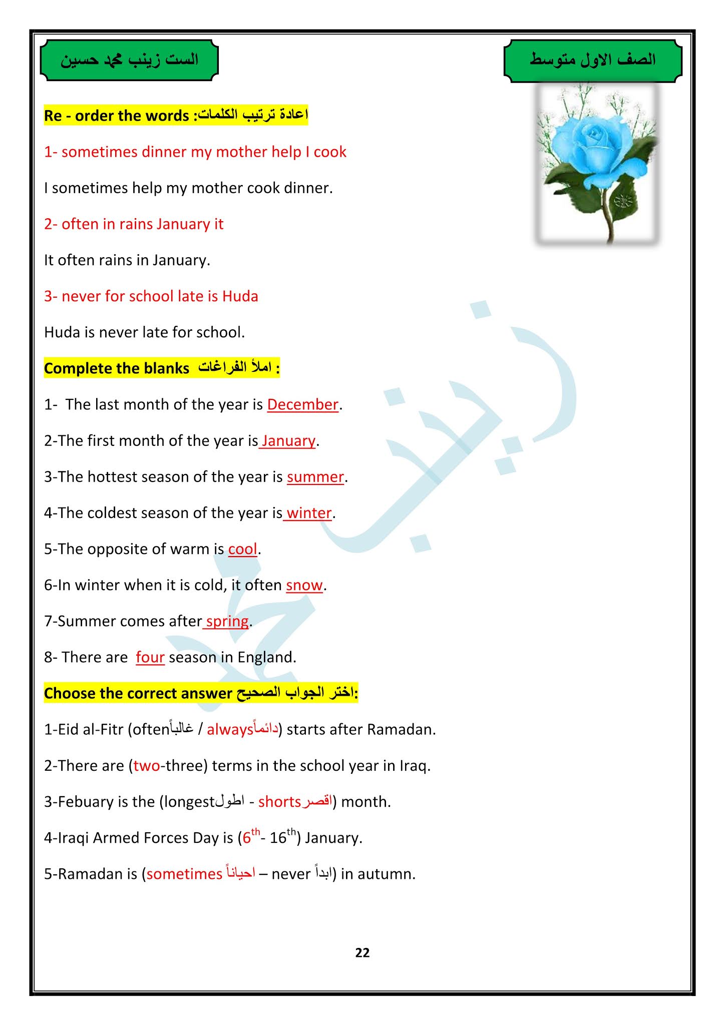 ملخص الوحدة الثانية Unit two انكليزي اول متوسط 2020 مع الانشاء وحلول النشاط اعداد الست زينب محمد حسين
