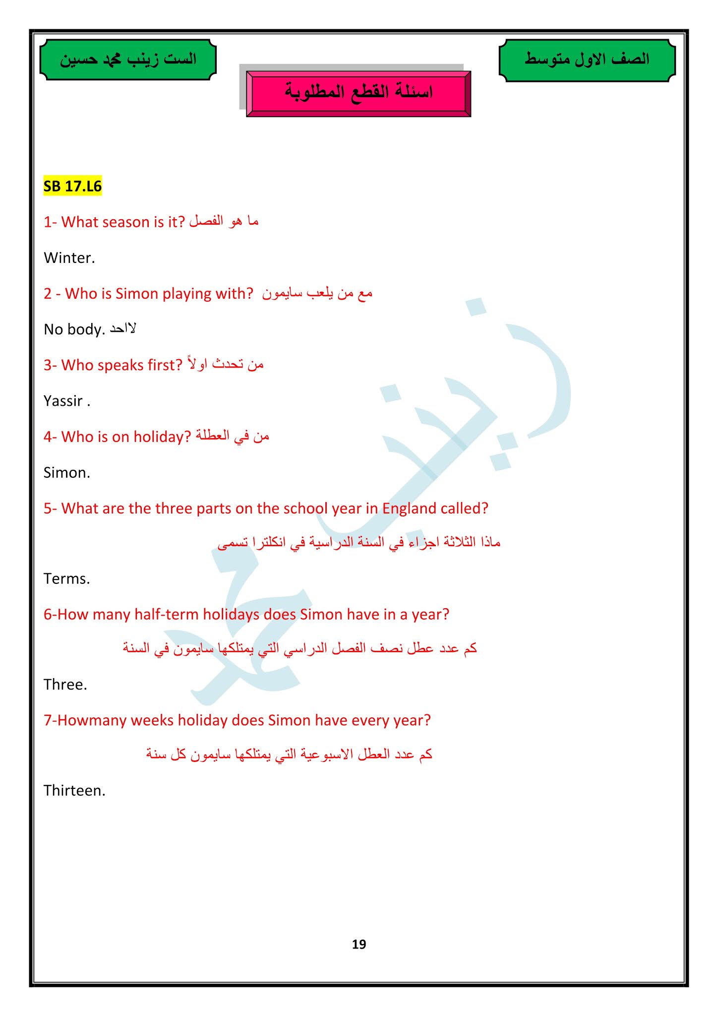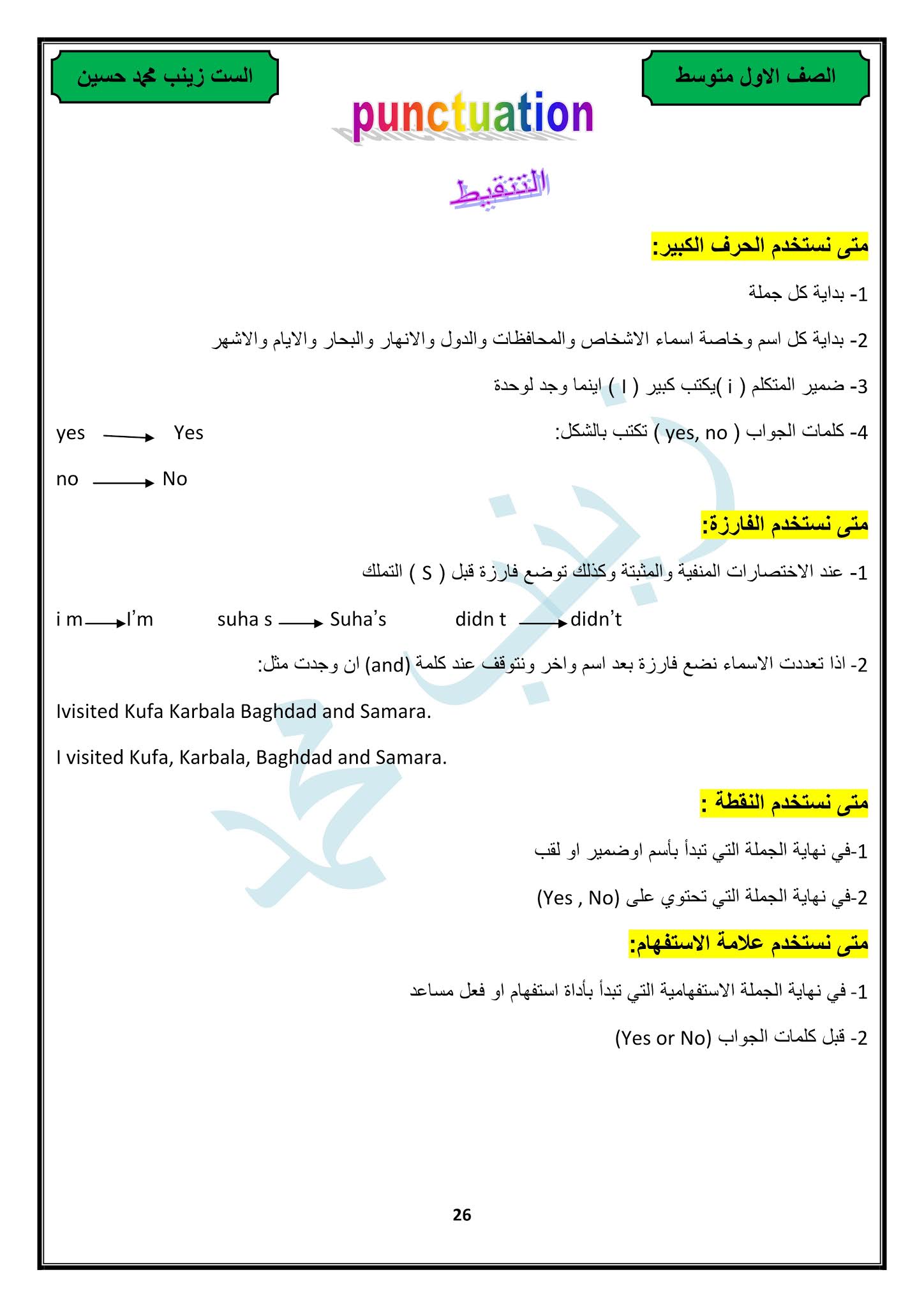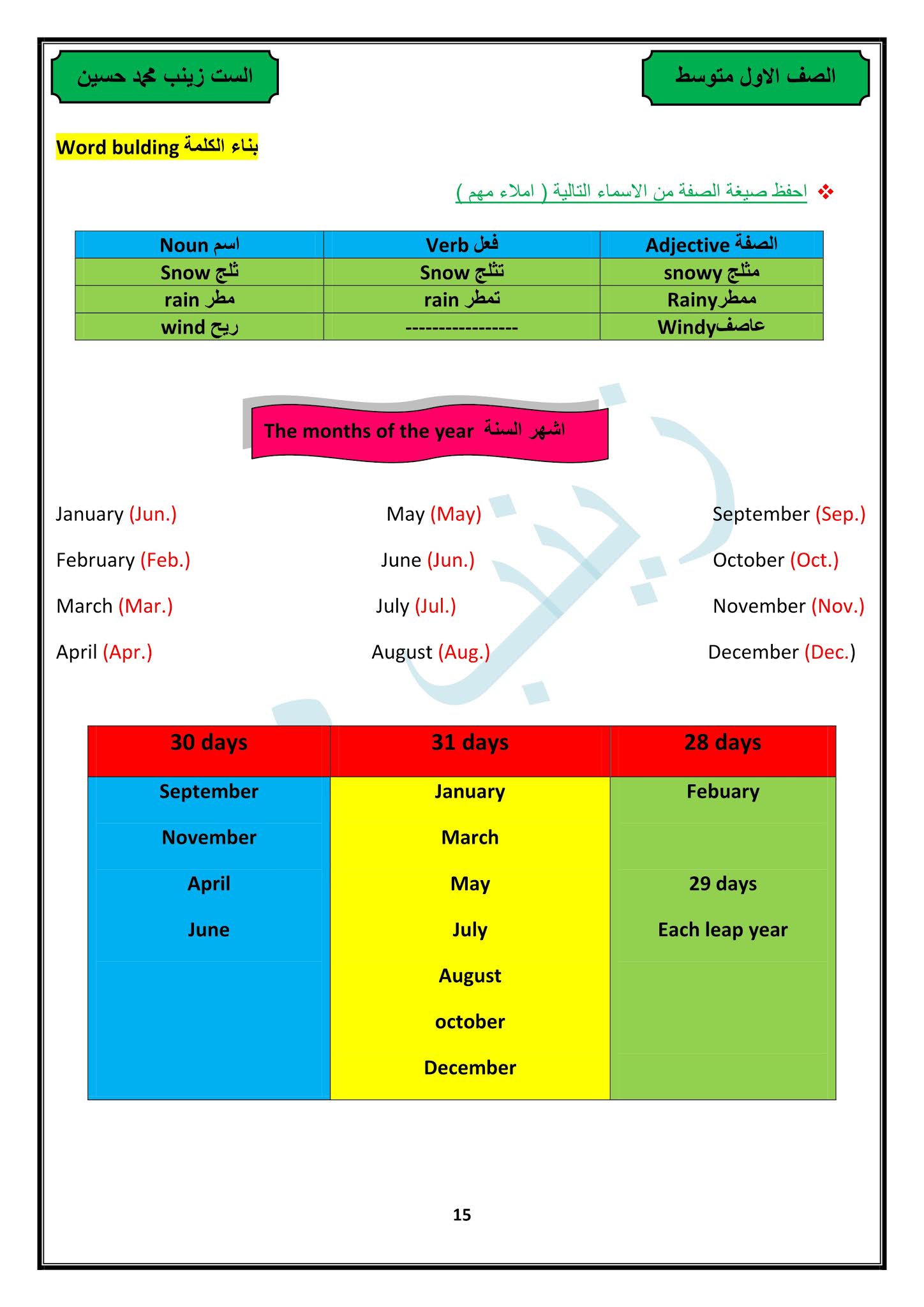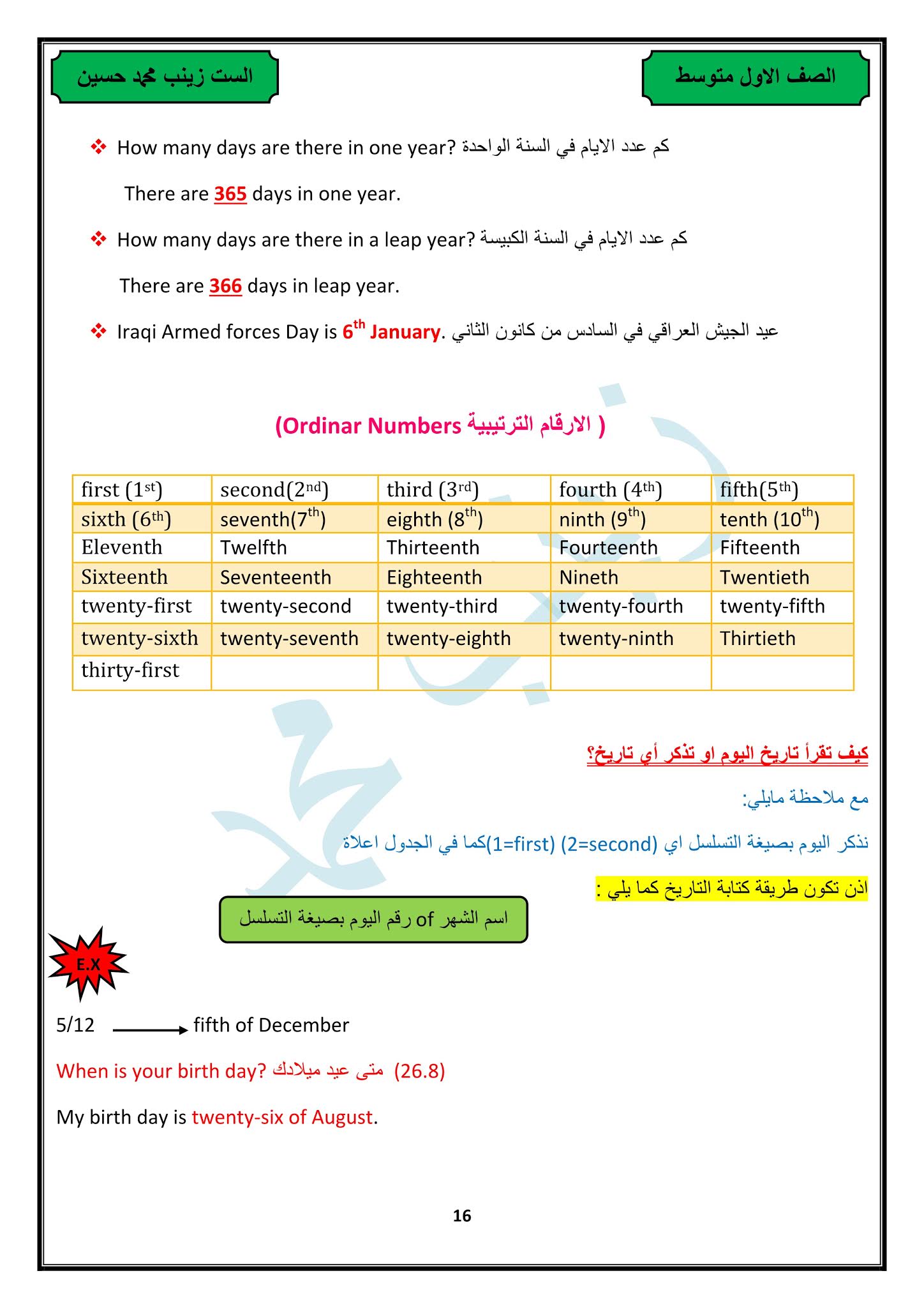 ملخص الوحدة الثانية Unit two انكليزي اول متوسط 2020 مع الانشاء وحلول النشاط اعداد الست زينب محمد حسين