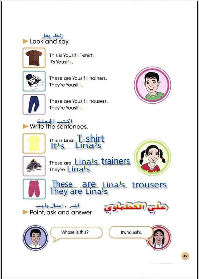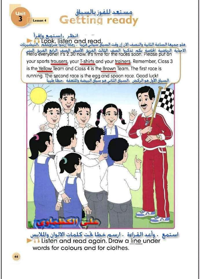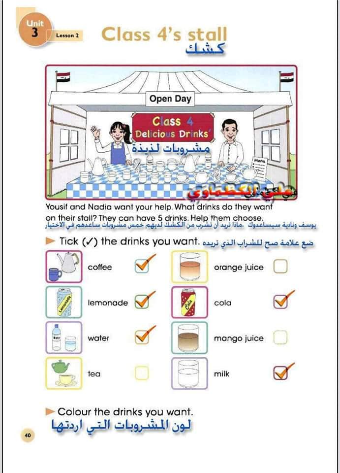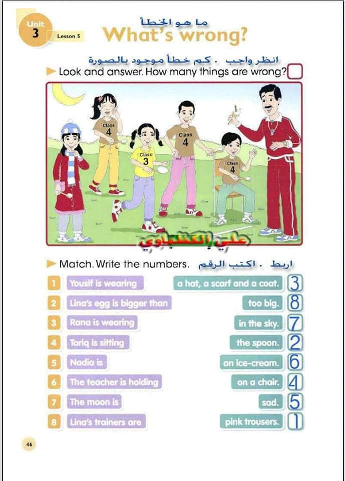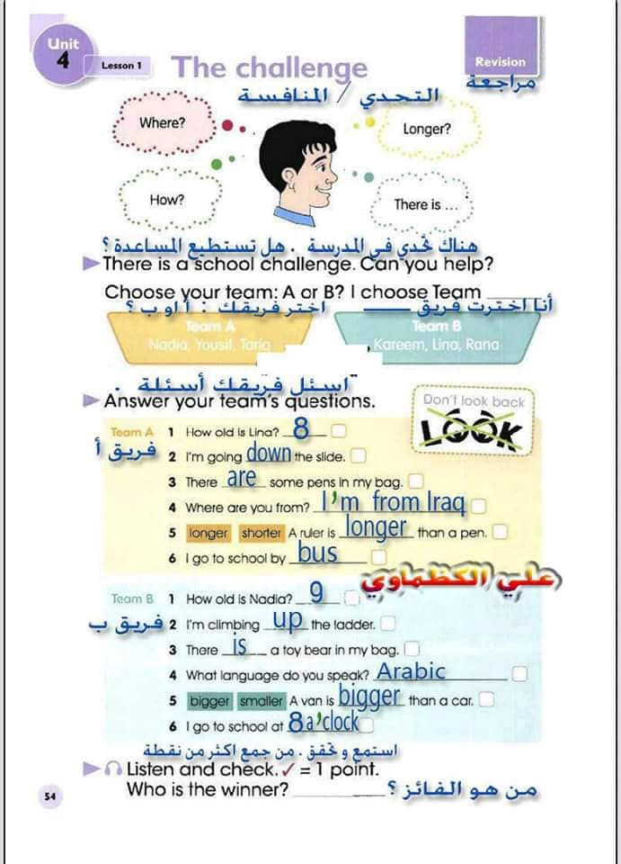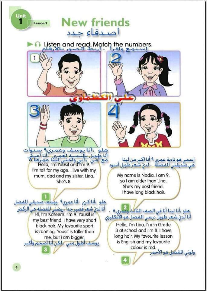ملخص لترجمة وحل تمارين كتاب التلميذ انكليزي صف الرابع ابتدائي الوحدات الاولى والثانية والثالثة والرابعة