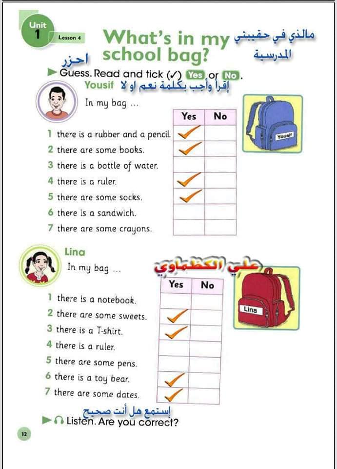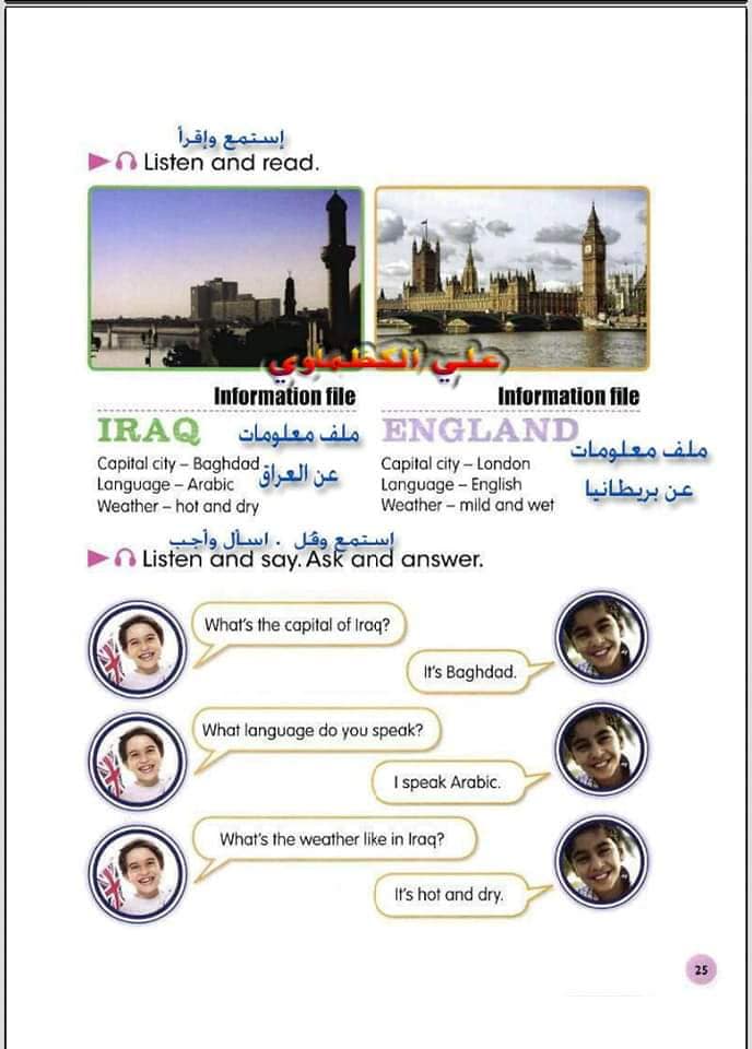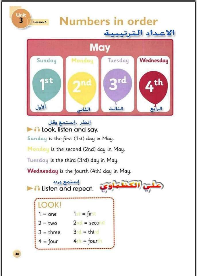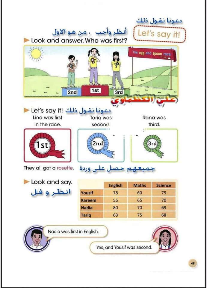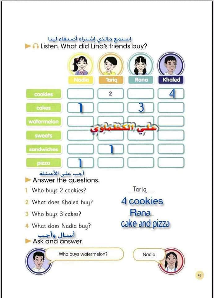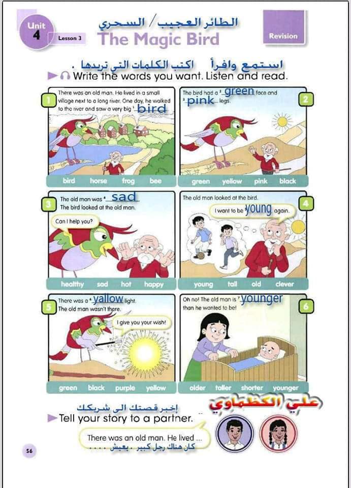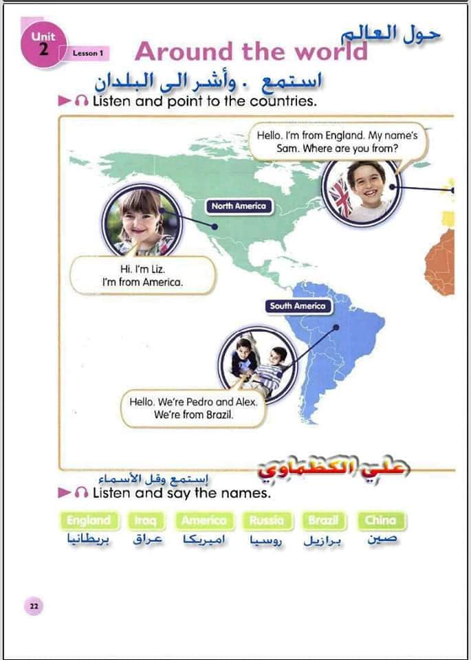 ملخص لترجمة وحل تمارين كتاب التلميذ انكليزي صف الرابع ابتدائي الوحدات الاولى والثانية والثالثة والرابعة