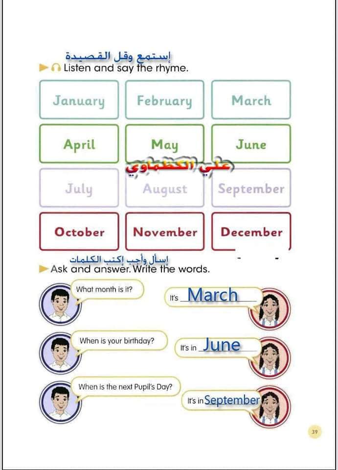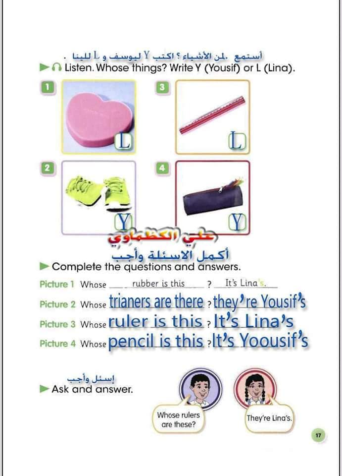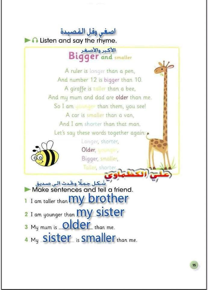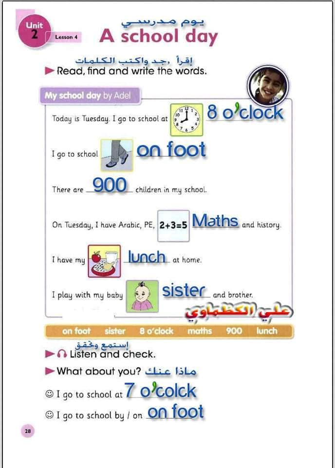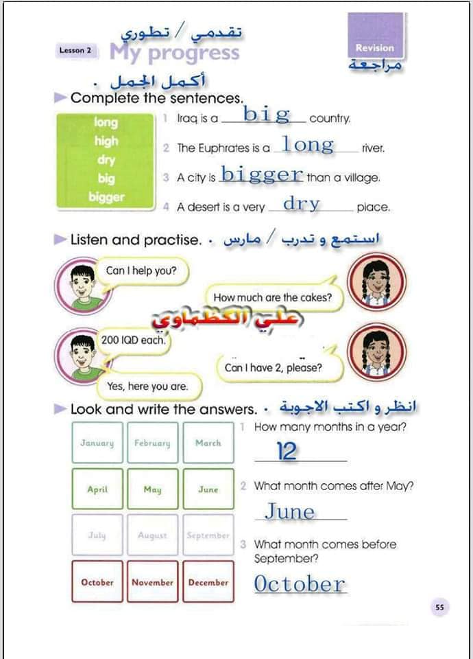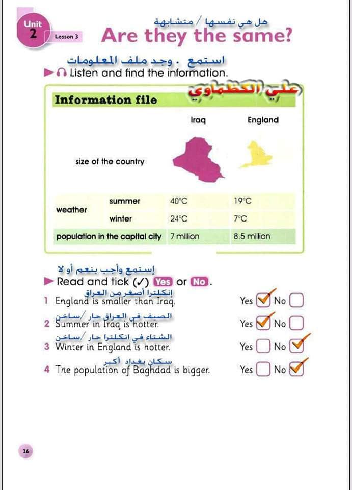 ملخص لترجمة وحل تمارين كتاب التلميذ انكليزي صف الرابع ابتدائي الوحدات الاولى والثانية والثالثة والرابعة